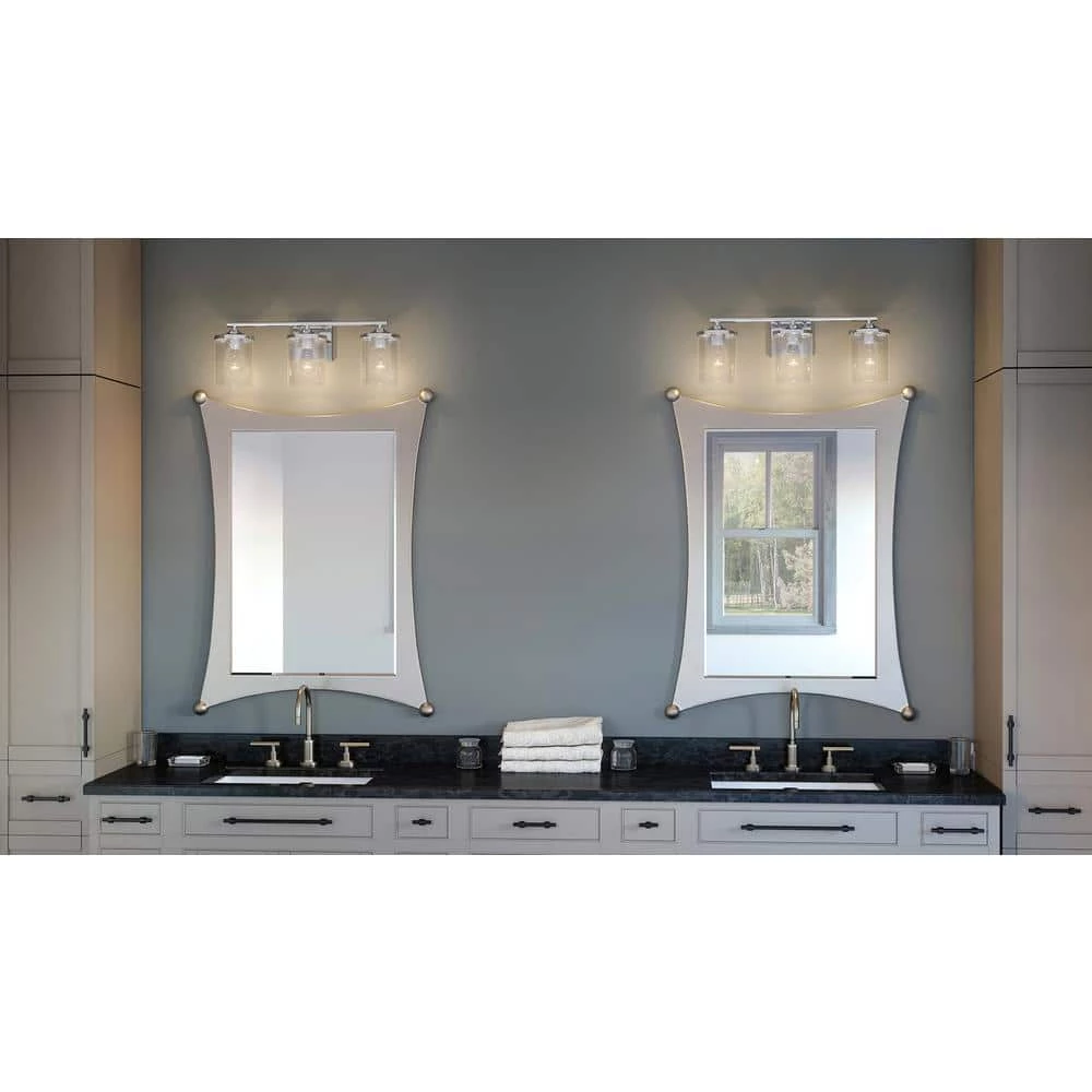 Add beautiful light to smaller spaces with the Abner series of vanity lights. Featuring clear hammered glass and sleek lines, Abner is available in a range of finishes like aged brass, matte black, and polished chrome. Proof that clean, simple design is impactful, this versatile style would work well in a variety of transitional bathroom settings.