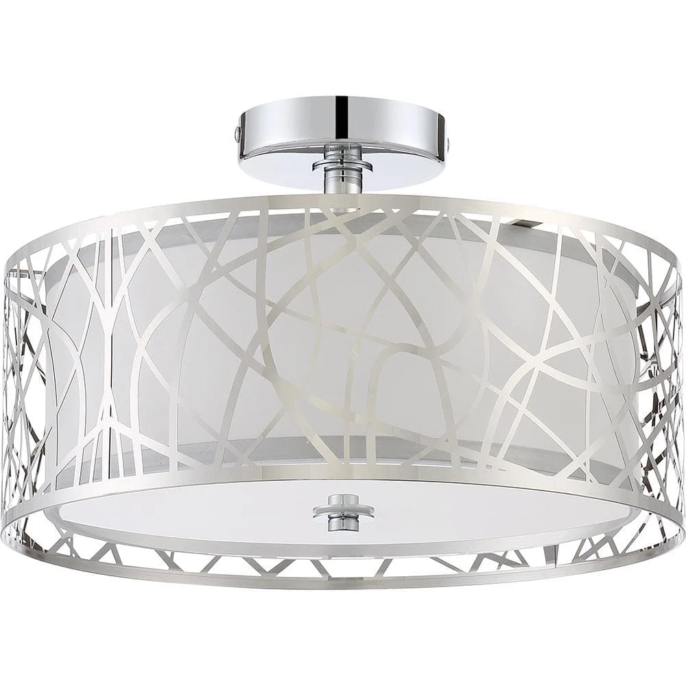 Contemporary, diverse and sharp are what makes the Platinum Collection’s Abode series a hit. The dual shades are combined to create a cohesive look with clear organza trimmed in grey under a laser cut metal shade with an intriguing, unique design. The sleek polished chrome finish completes the look.