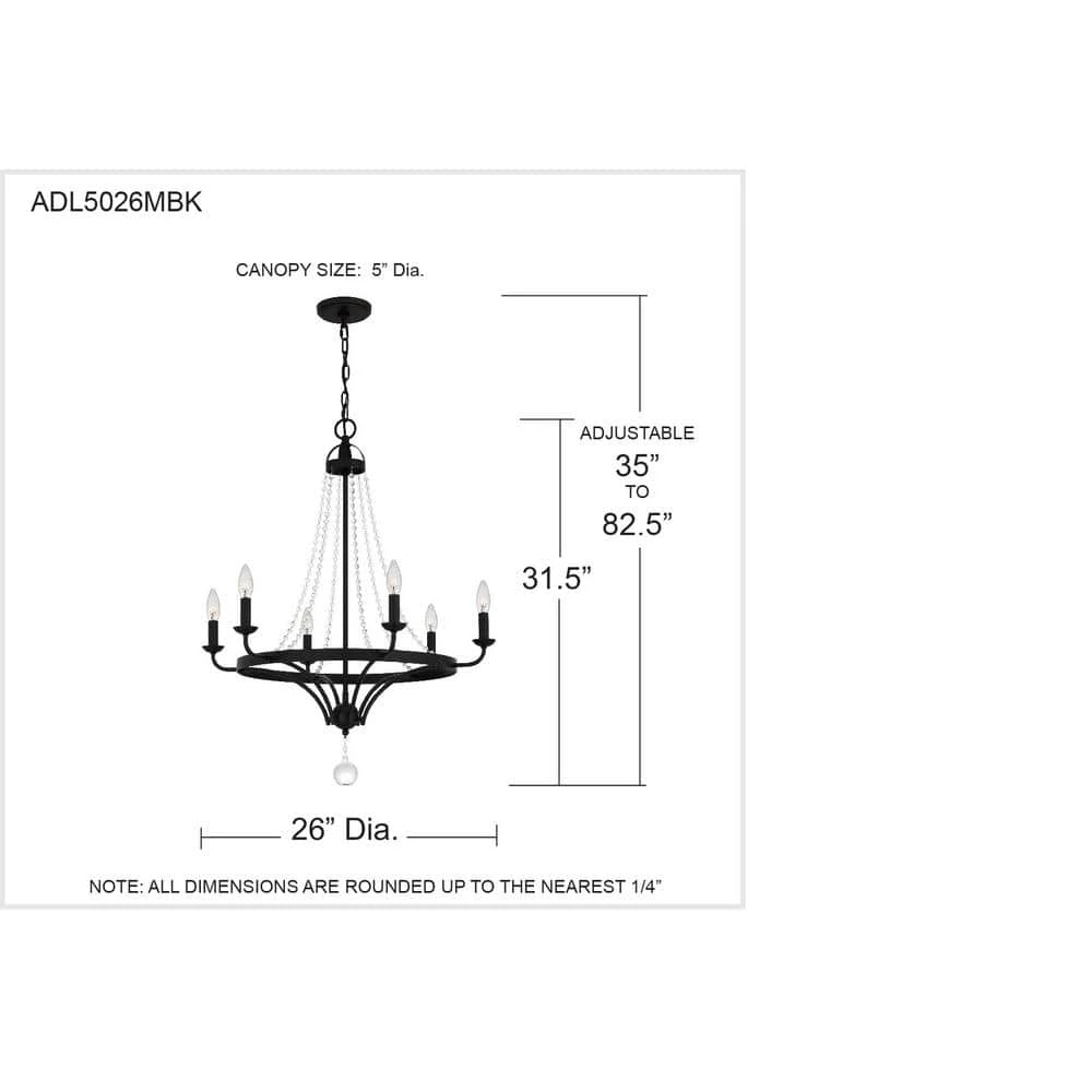 - Uses (6) 60-Watt candelabra base bulbs (not included)