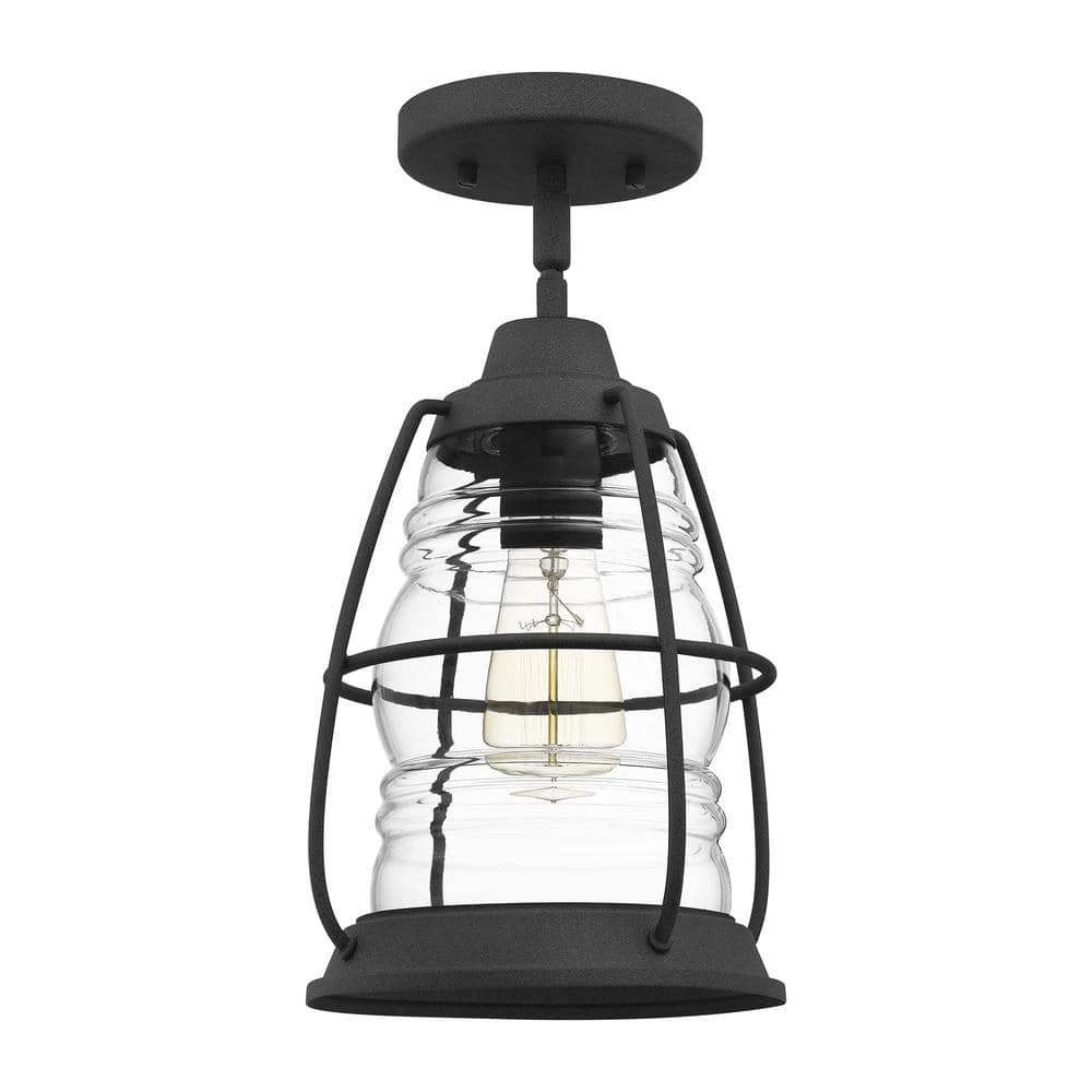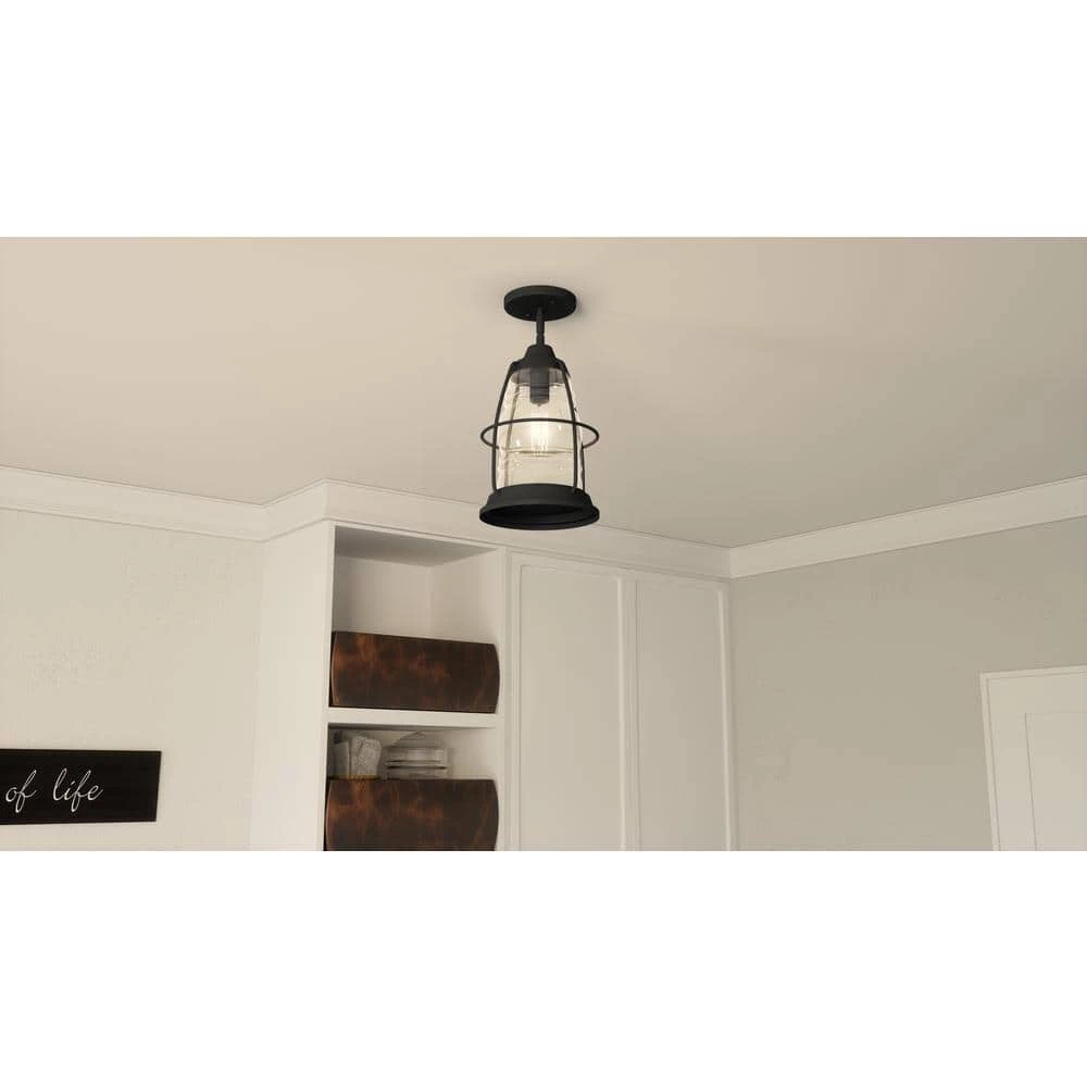 Smart and stately, the Admiral harks back to traditional lantern styles. A streamlined combination of mottled black hardware and clear glass, this mini pendant or semi-flush mount creates a stunning focal point for farmhouse decor. Hang indoors or outdoors with peace of mind.