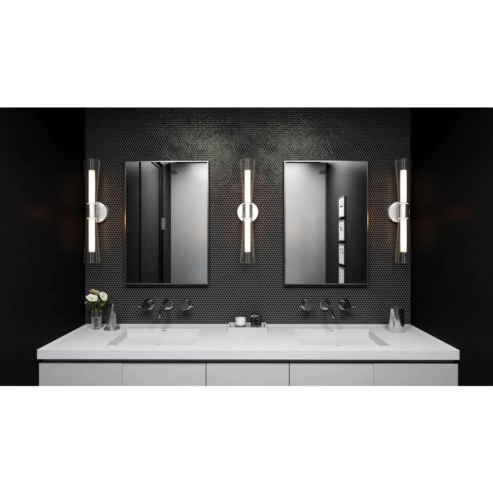 The Amara bath light blends elements both futuristic and functional. Made from high-shine polished chrome with clear glass shades, this light is an ideal complement to contemporary and modern bath designs. Arrange it horizontally or vertically, depending on the unique needs of your space.