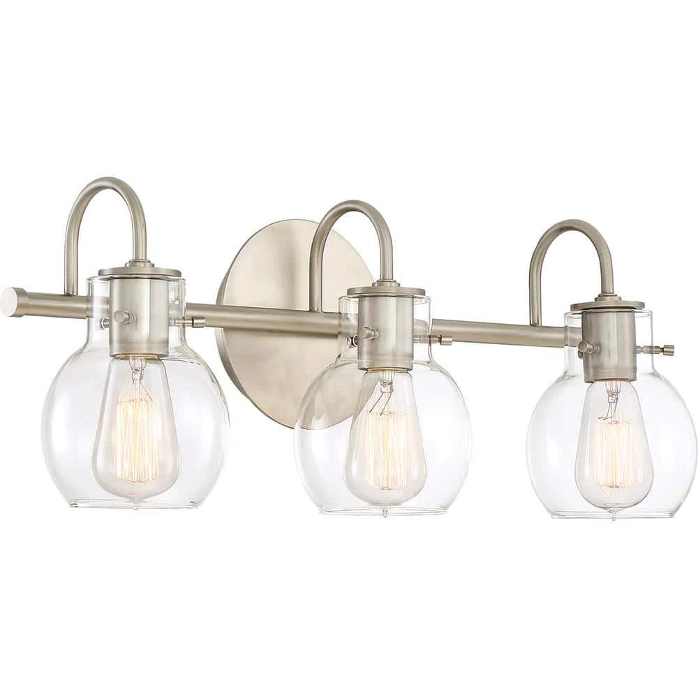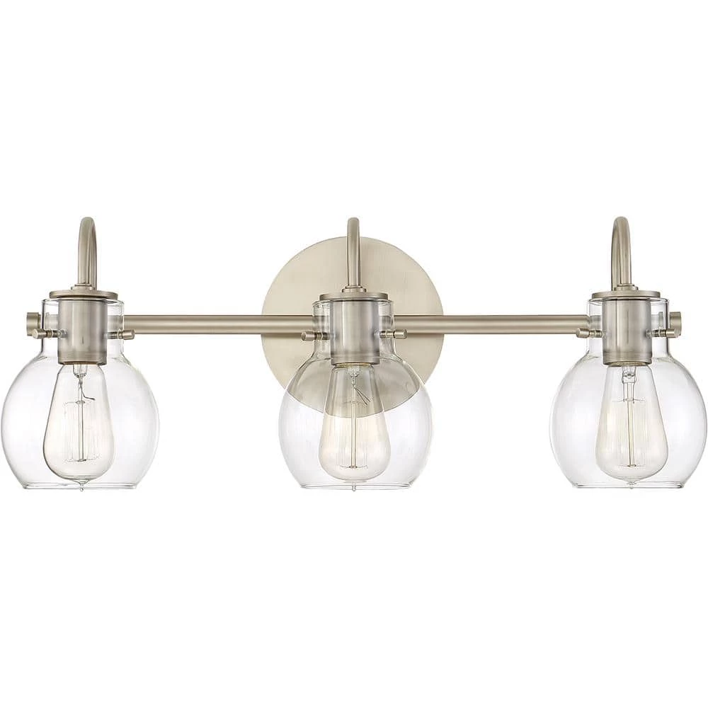 The ageless style of the Andrews Bath Collection is synonymous with classic industrial design. The clear glass shades encircle the sockets and appear as though they are floating over the vintage filament bulbs. The Antique Nickel finish on the fixture body completes the look.