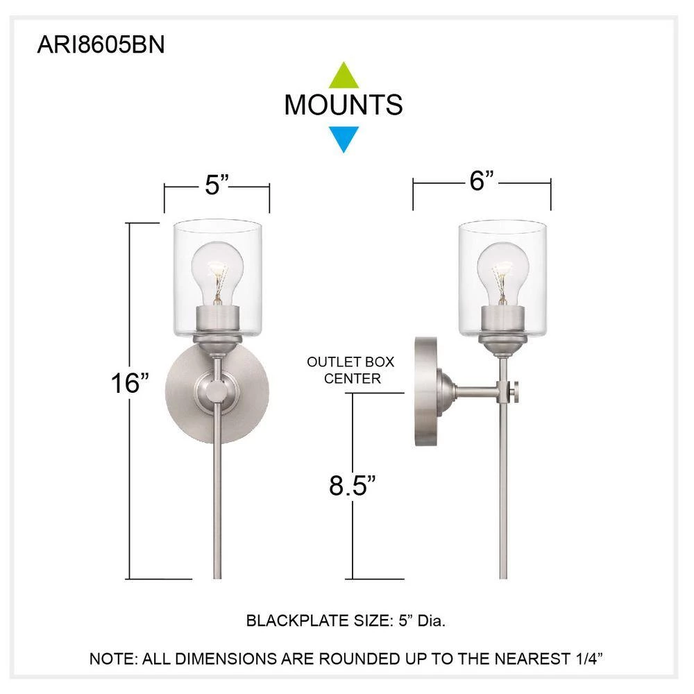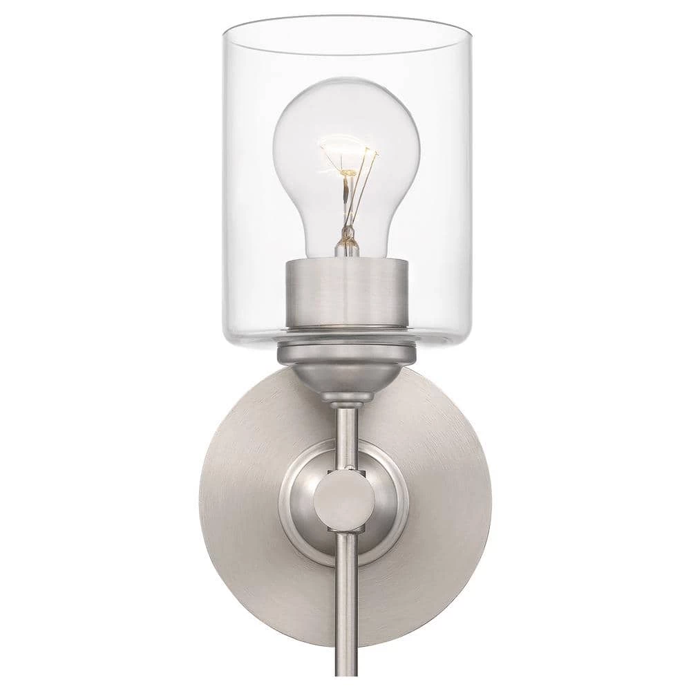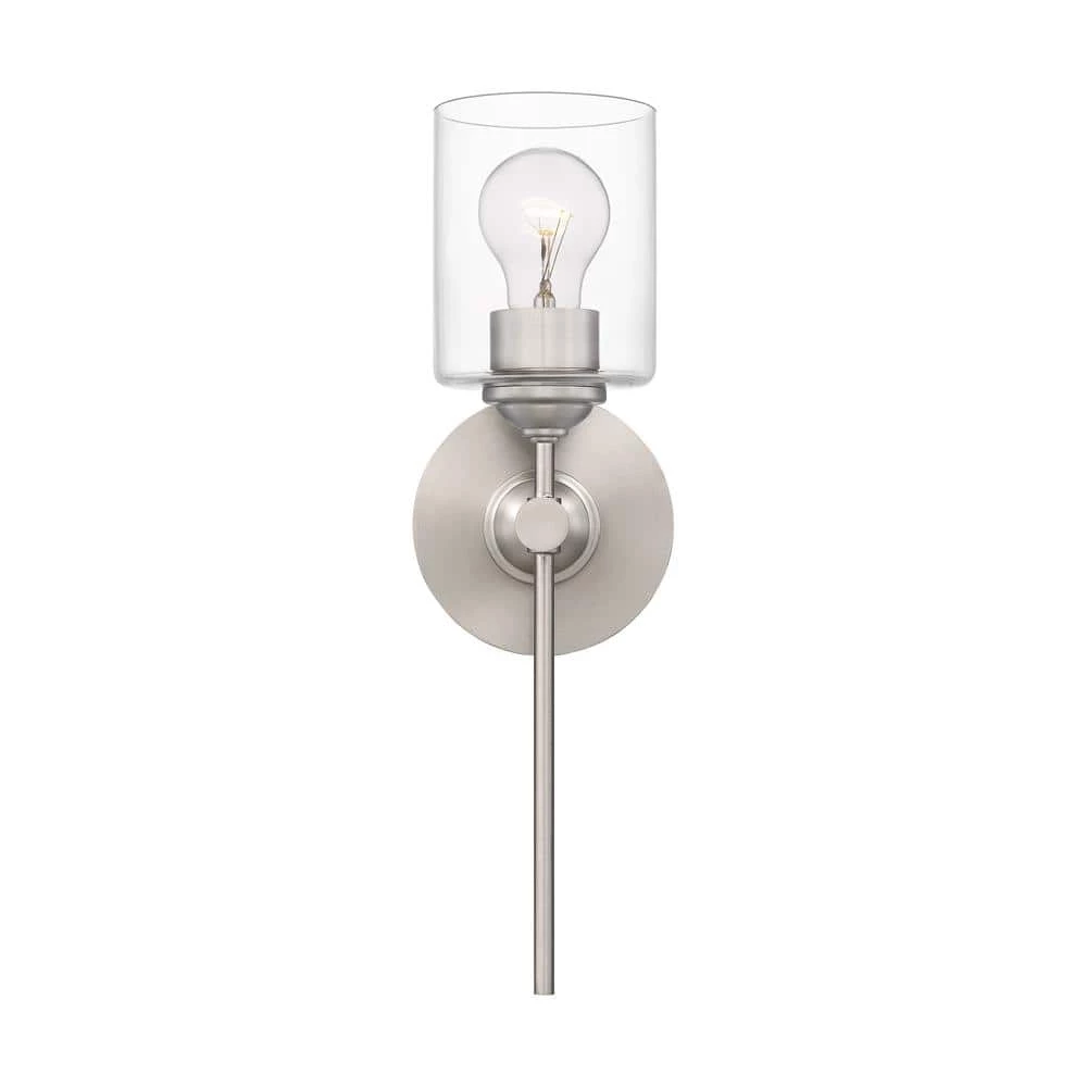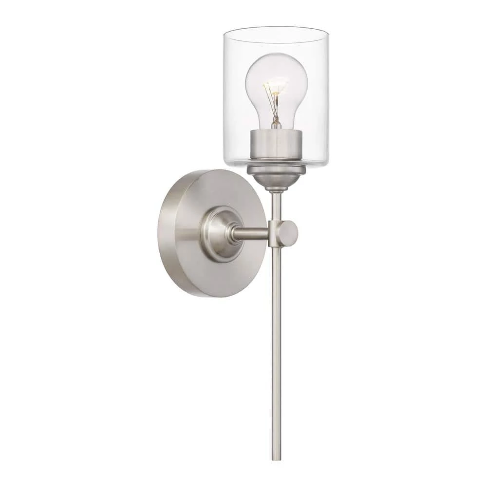 Shapely and eye-catching, the Aria sconce features a striking silhouette with a clear glass candle cup. In brushed nickel, it offers a crisp and classic vibe. Or choose the Weathered Brass colorway with an opal glass shade to warm up a powder room or entryway.