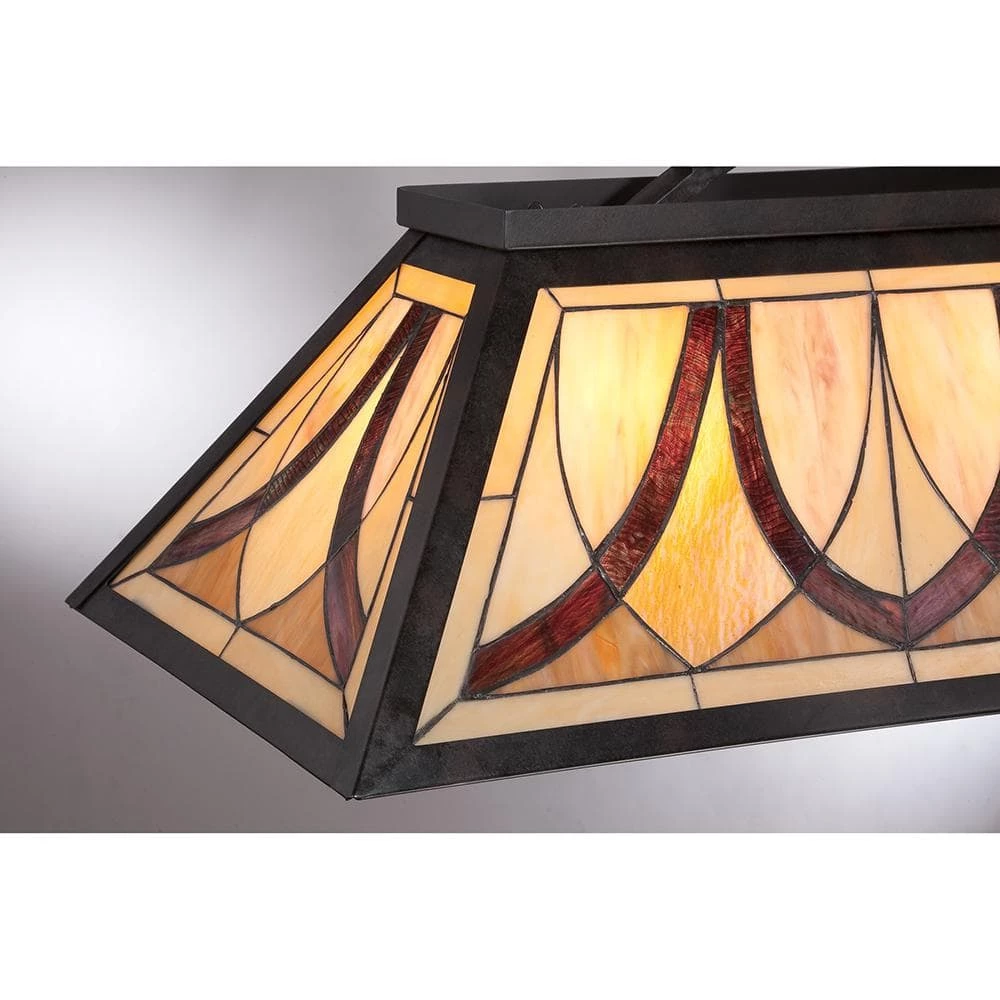 Gentle scrollwork and Tiffany style in a classic pattern brings sophistication to the Asheville Collection. The Tiffany glass is hand assembled using the copper foil method developed by Louis Comfort Tiffany. The Valiant Bronze finish anchors the traditional styling.