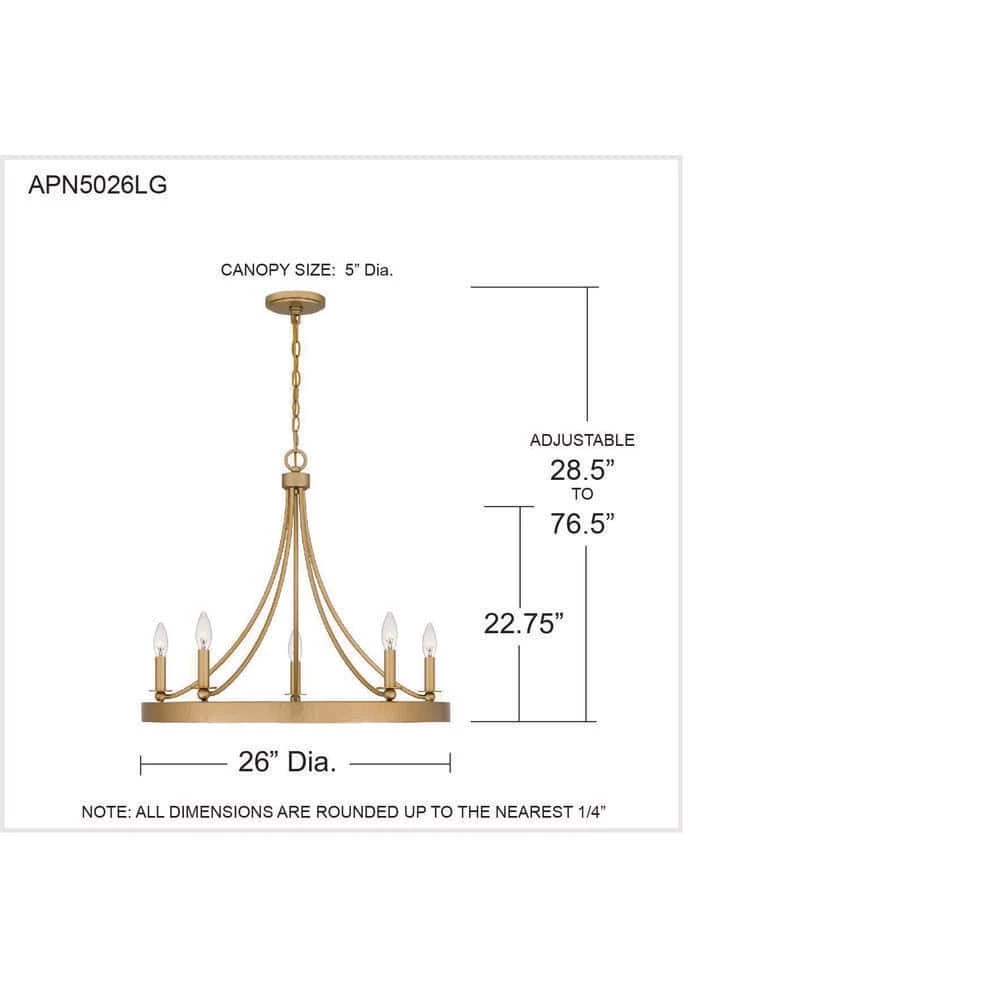 - Uses (5) 60-watt candelabra base bulbs (not included)