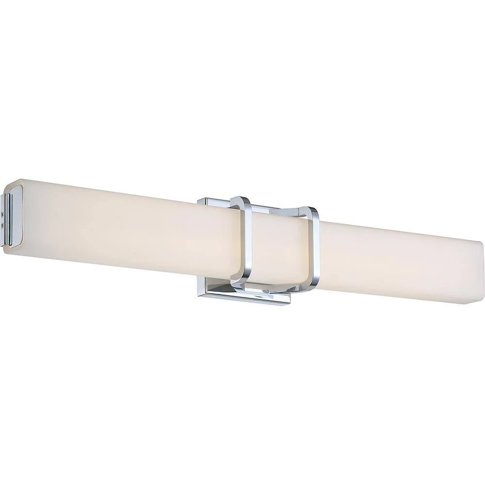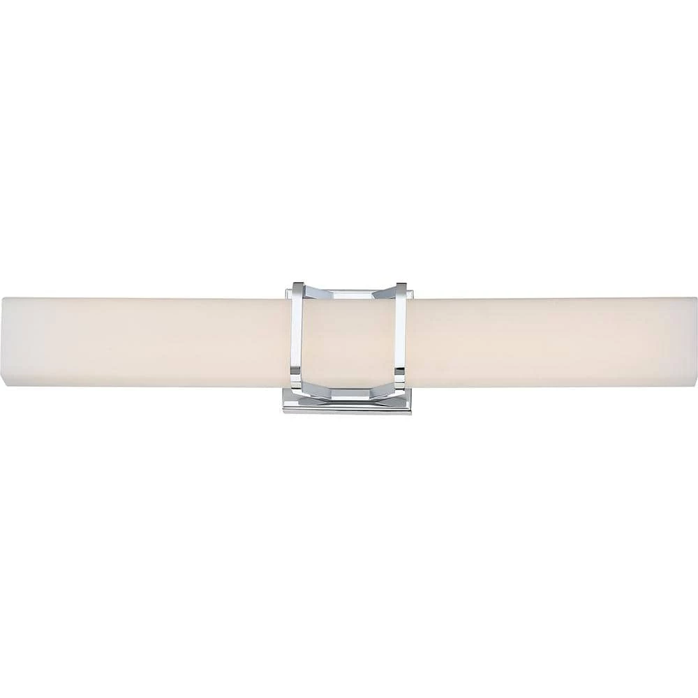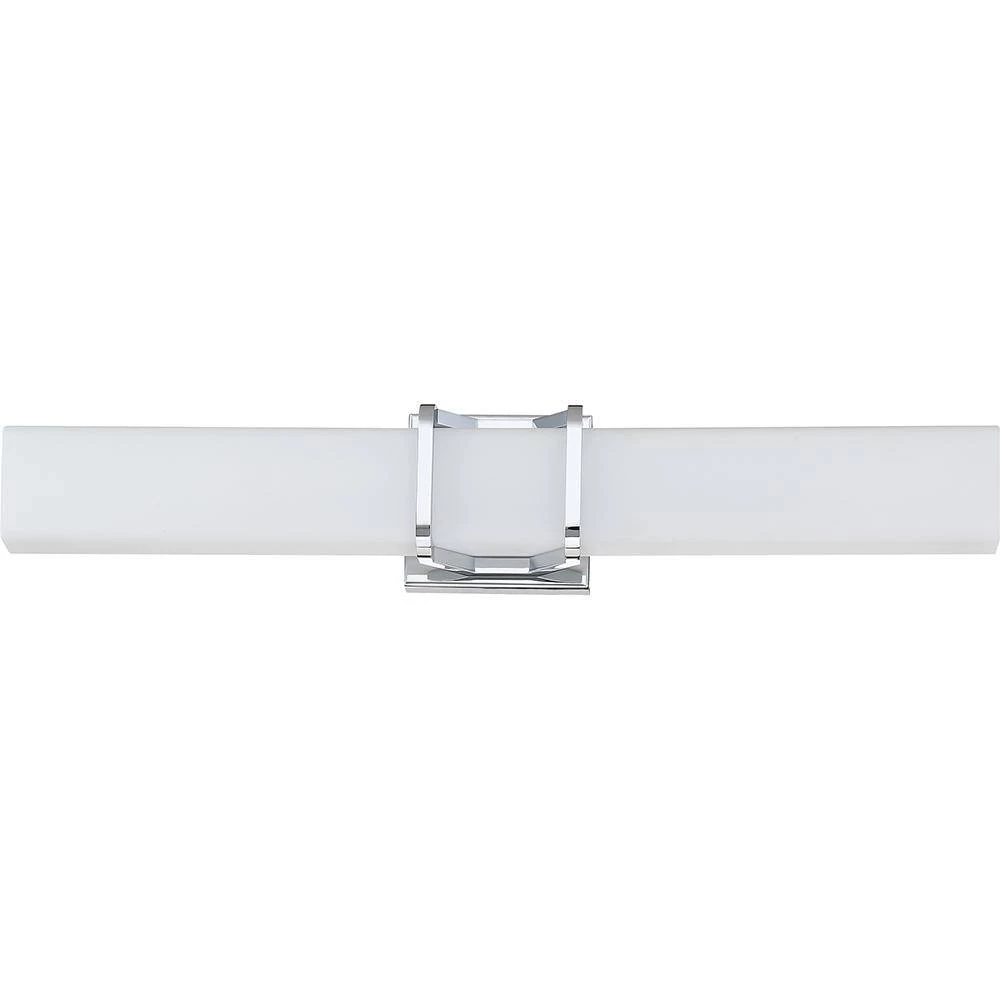 Streamlined and functional, the Axis Bath Series brings modern sensibility to Quoizel’ s Platinum Collection with the simplicity of its design. The sleek Polished Chrome finish on the base extends to the open ends of the opal etched glass for a cohesive look. The fixture can mount up or down to suit your desired ambience.