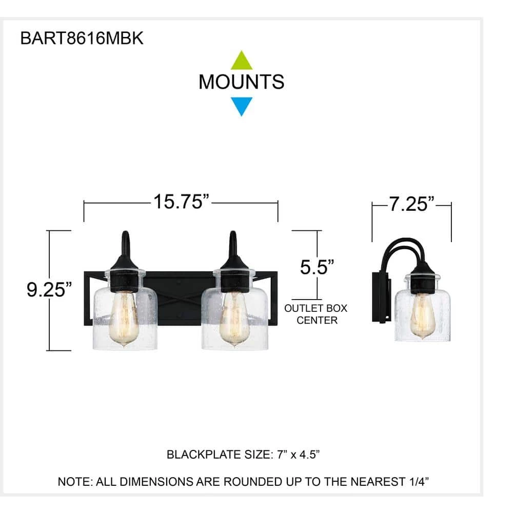 Orient the Bartley bath light up or down to customize – and maximize – illumination within a primary or guest bathroom. Available in the soft sheen of brushed nickel or the clean lines of matte black, this light features subtle architectural details. A seeded glass shade offers a touch of patina.