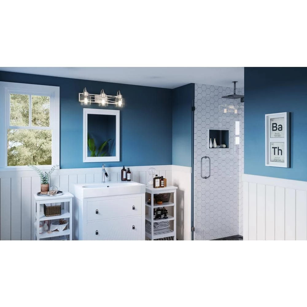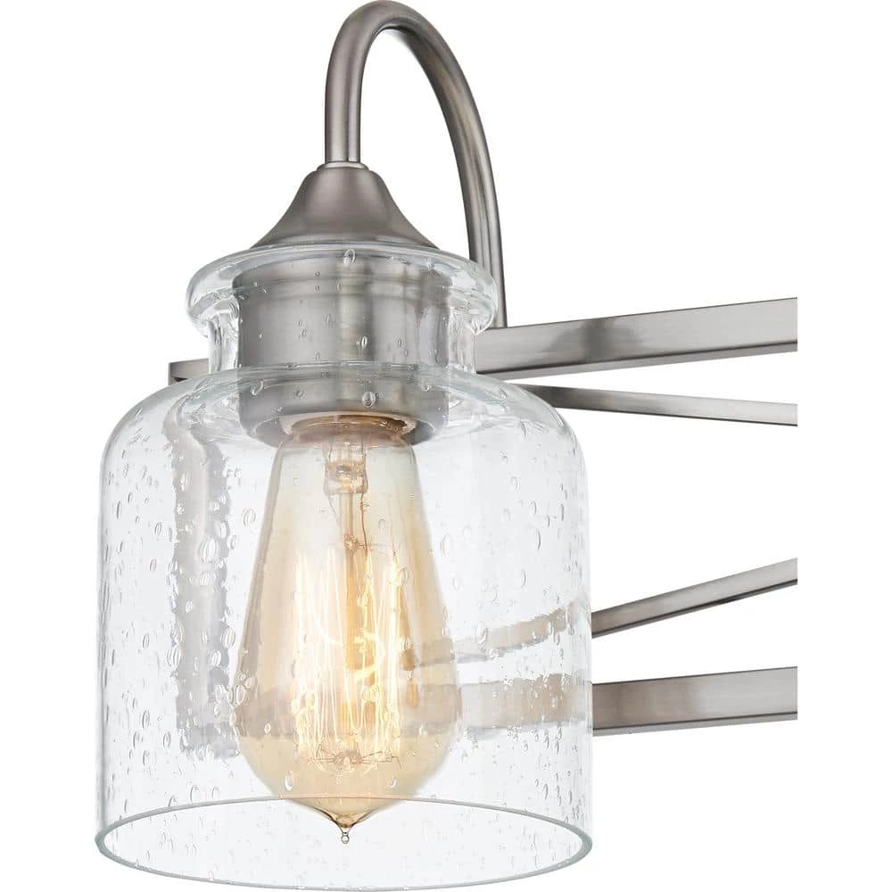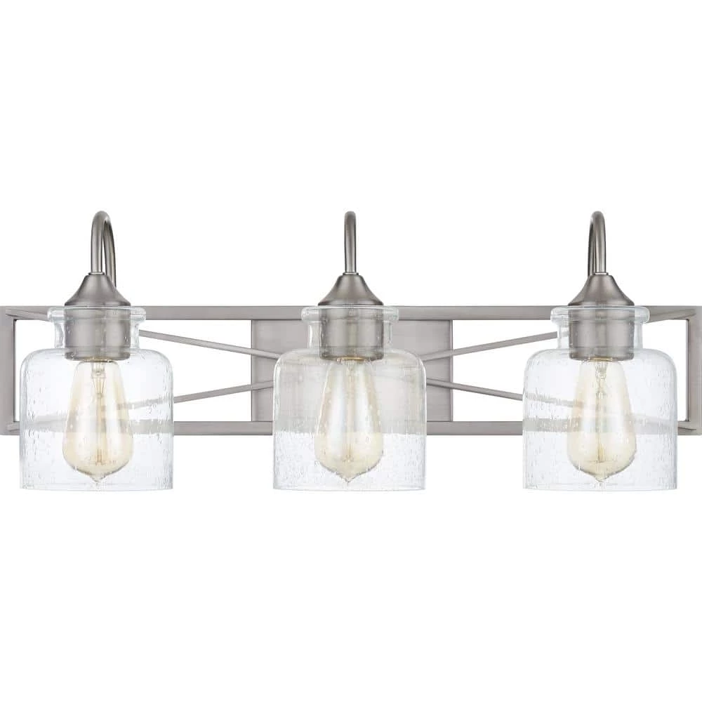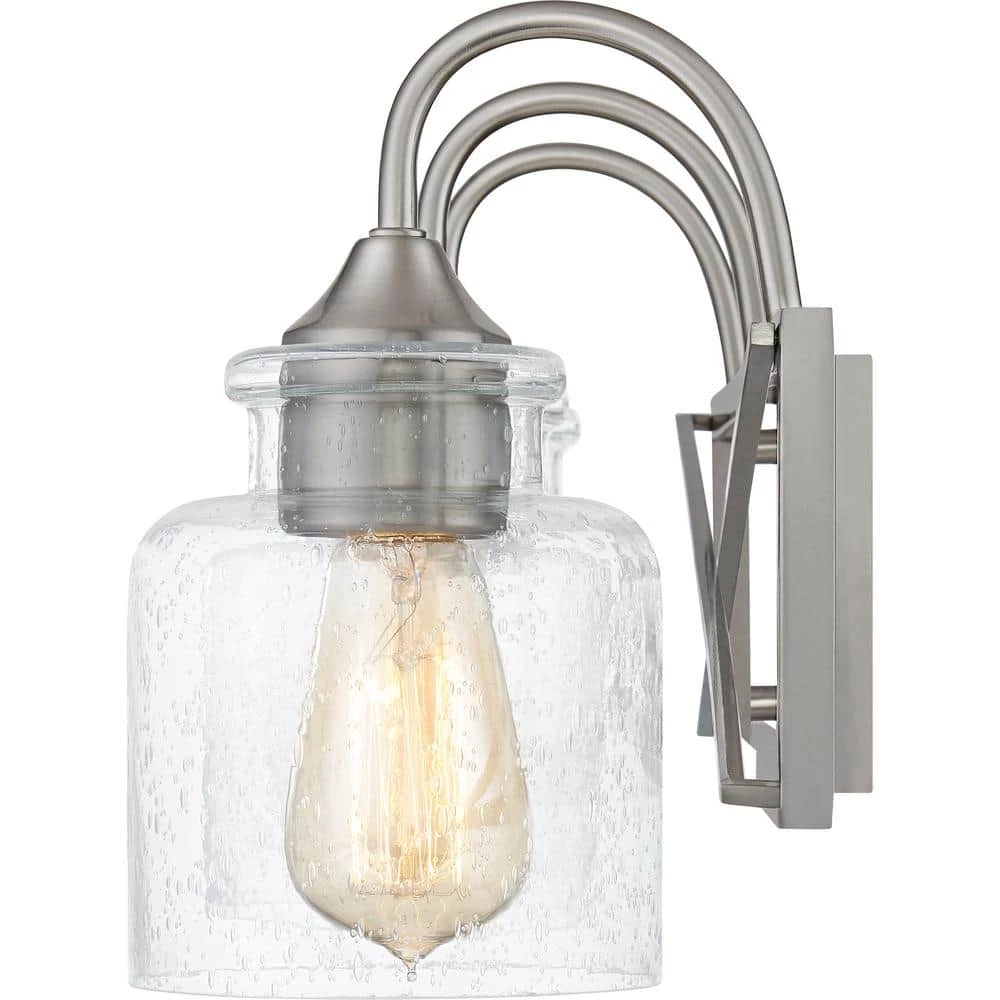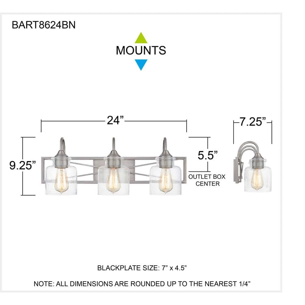 Orient the Bartley bath light up or down to customize – and maximize – illumination within a primary or guest bathroom. Available in the soft sheen of brushed nickel or the clean lines of matte black, this light features subtle architectural details. A seeded glass shade offers a touch of patina.