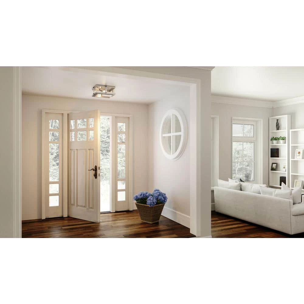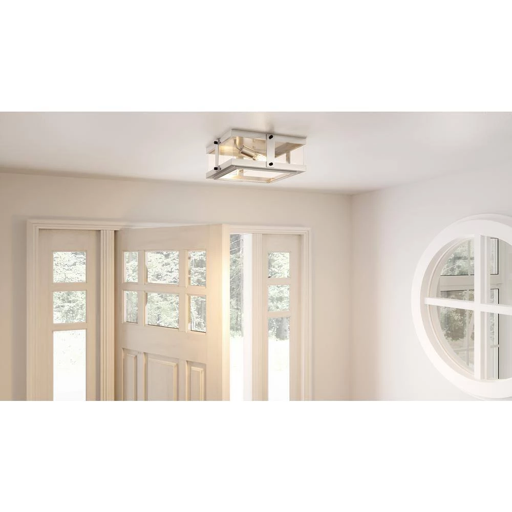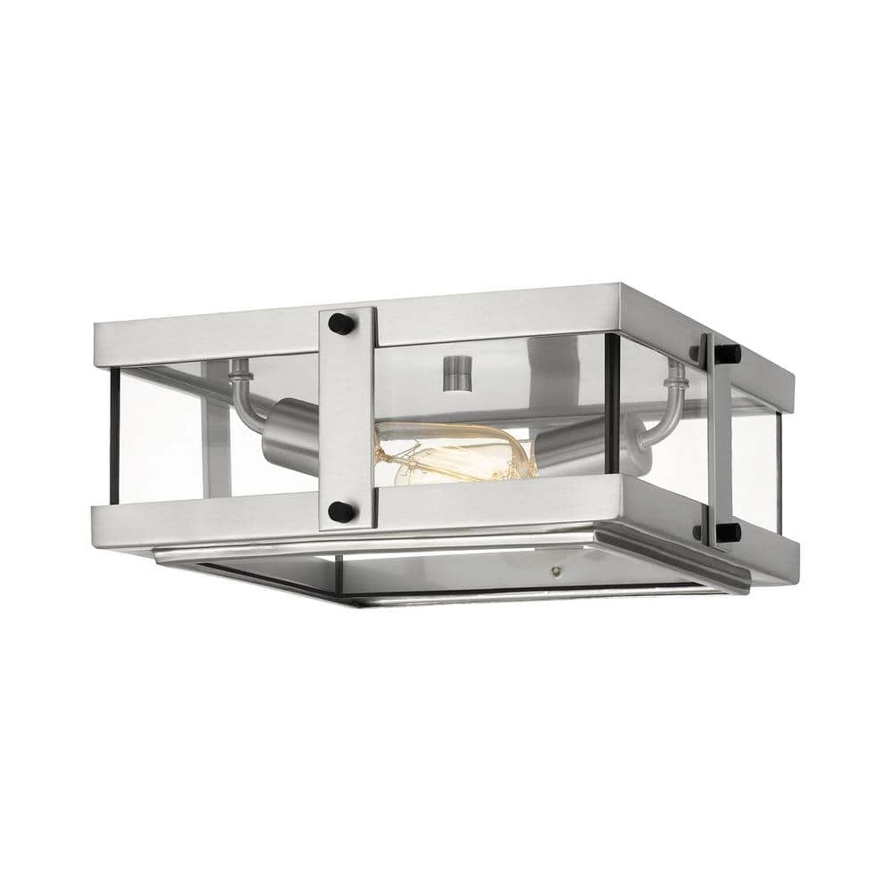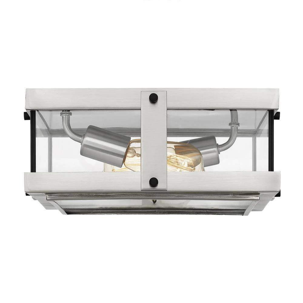The Beck flush mount radiates mid-century vibes with its angular shape and choice of earth black or brushed nickel finish. Use this utilitarian design in a range of spaces: mud rooms, laundry rooms, entryways, powder rooms and more. Add in vintage bulbs (not included) for a subtle touch of industrial styling.