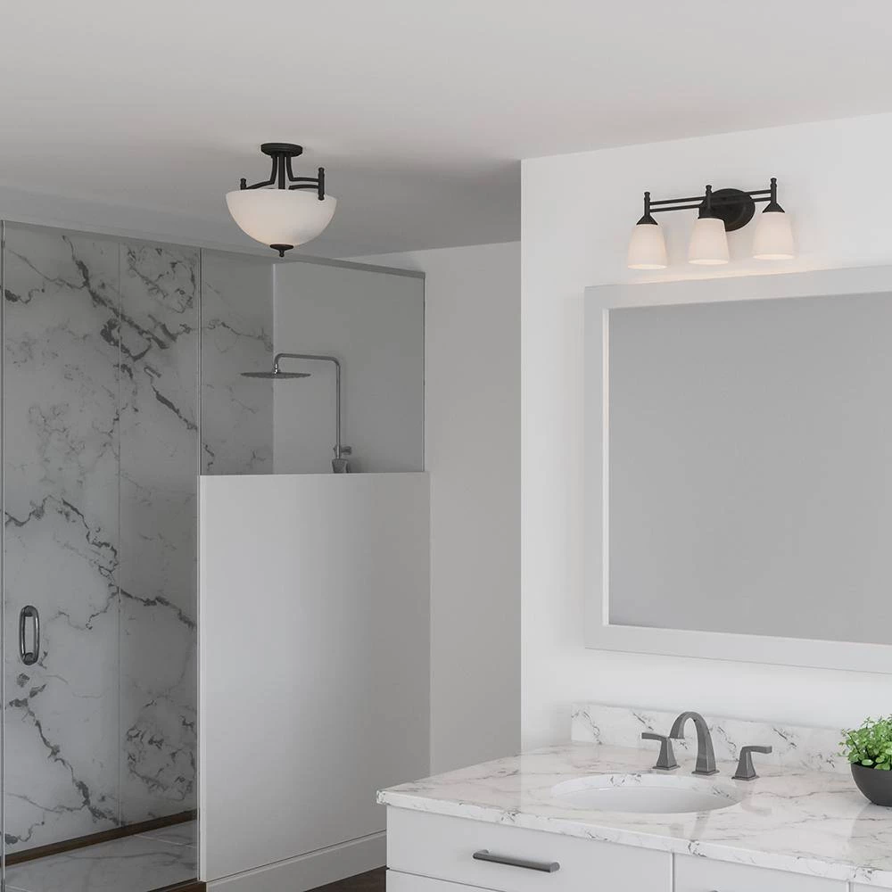 The Billingsley is a clean, transitional collection. Its thin, twin support frame elevates the simple silhouette, while classic accents easily coordinate with a variety of home decor styles. Complemented by etched glass shades, all fixtures are available in your choice of brushed nickel or old bronze finish.