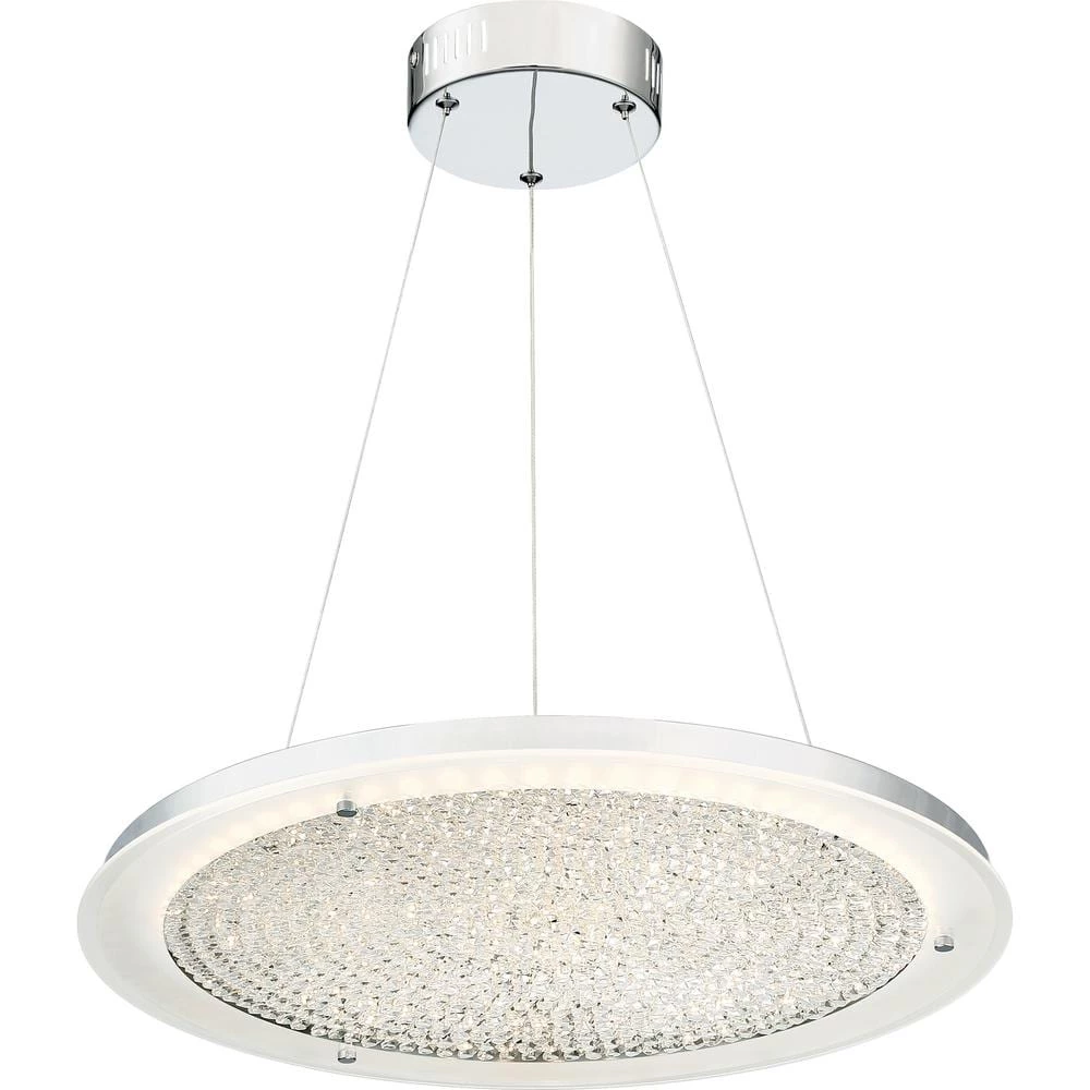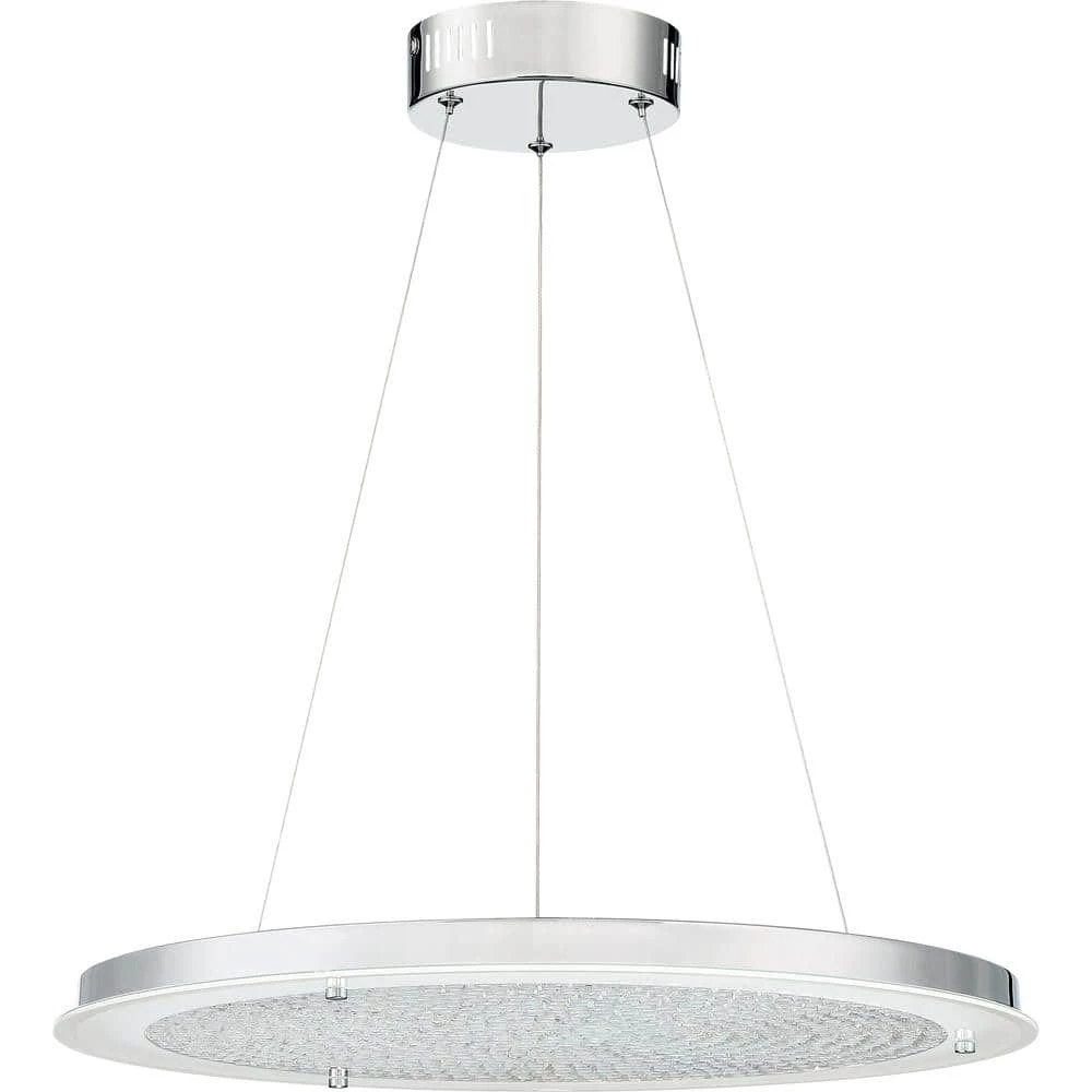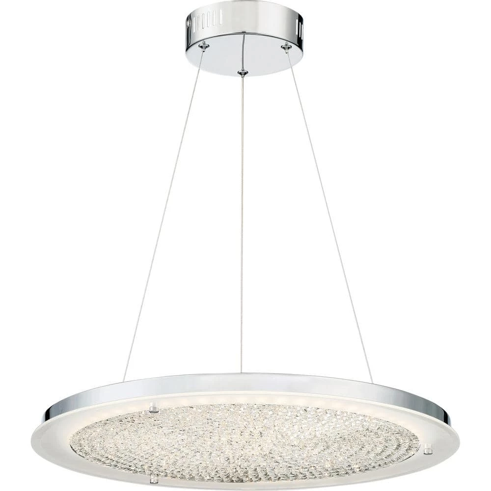 A simple yet stunning pendant, the Blaze series is modern and sleek. The shimmering crystals float on a disk on glass that is frosted on the perimeter to enhance the striking design. The Polished Chrome finish on the base and accents add the perfect finishing touch. Matching flush mount available.