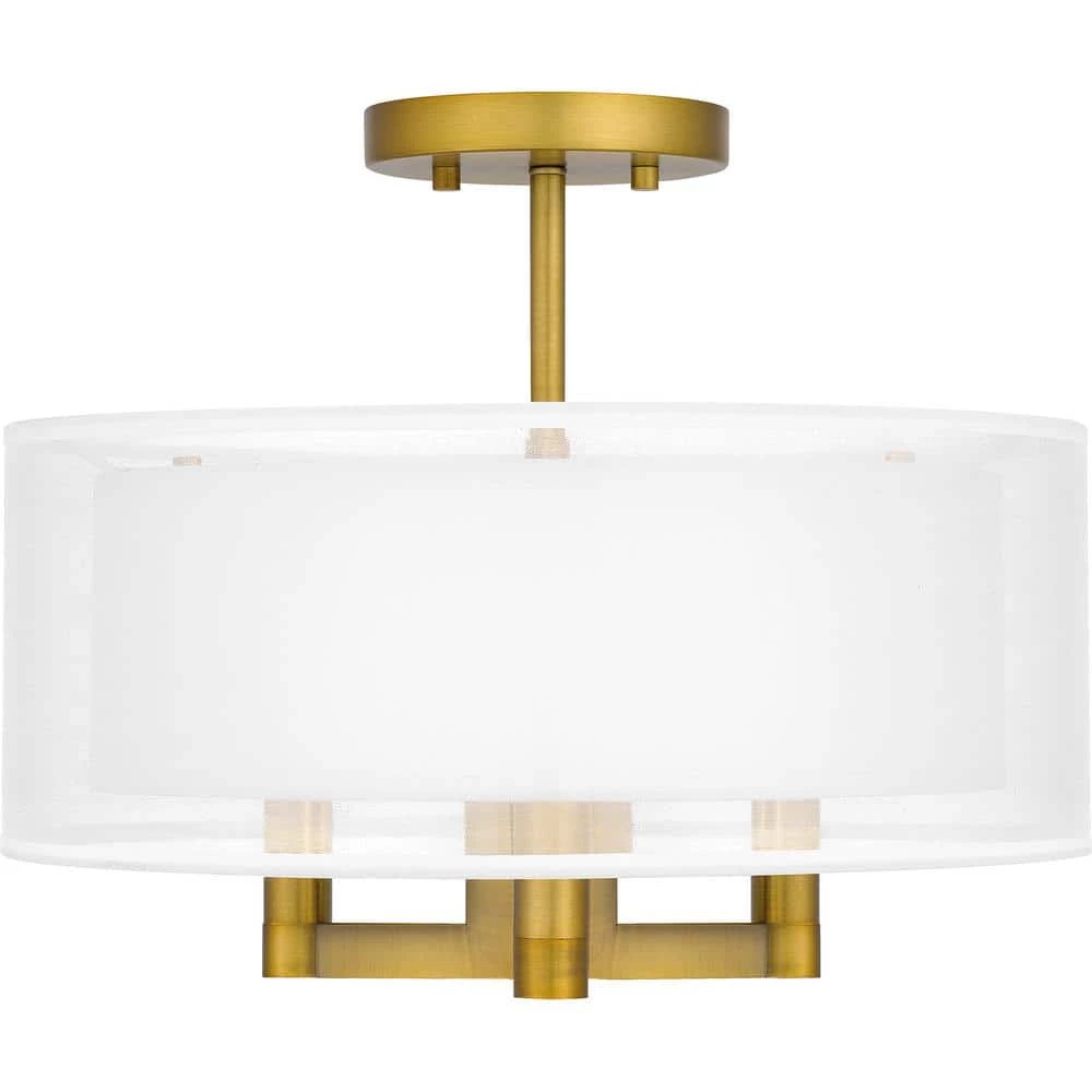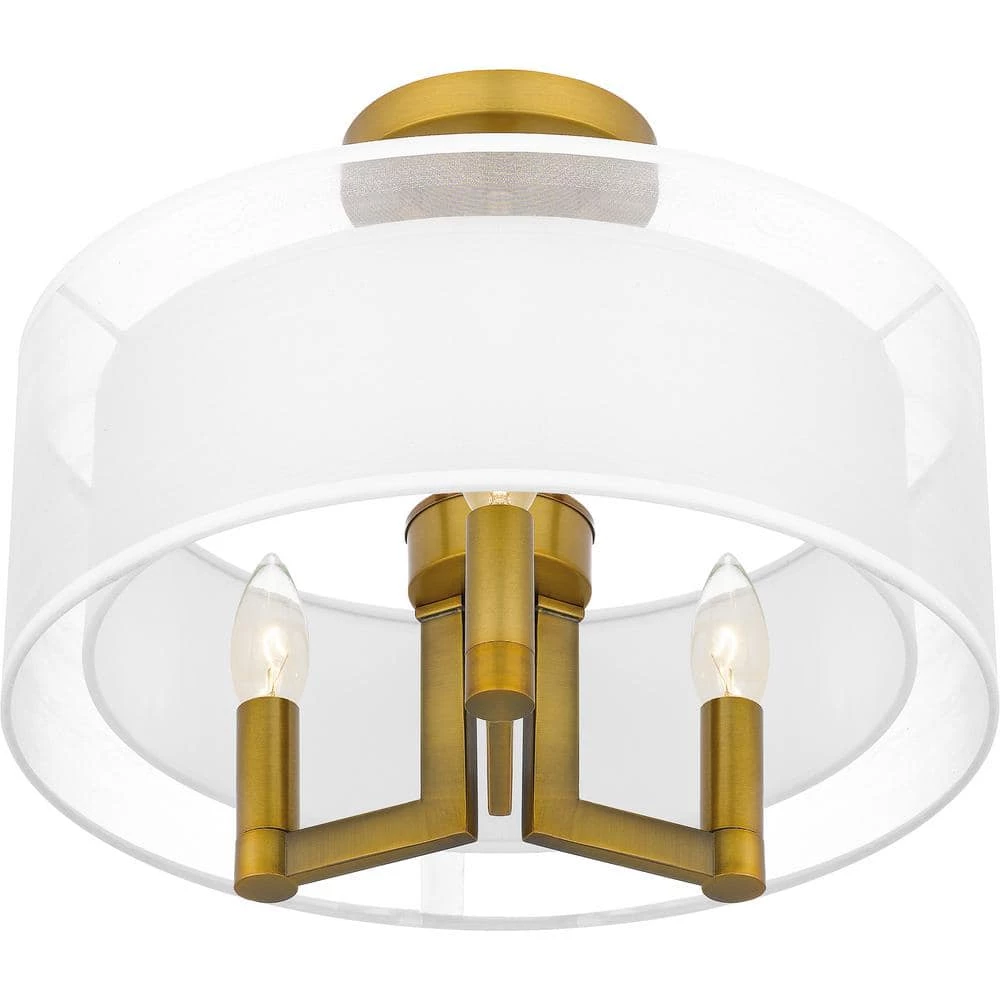 Cool and modern. Bodnar is an elegant choice, with its aged brass finish and bold detailing. The unique drum shade features a double layer of fabric for a unique lighting effect- organza on the outside and white on the inside. Use this semi-flush mount in a primary bathroom to recreate the feel of a luxury hotel or spa.