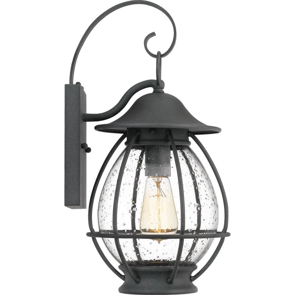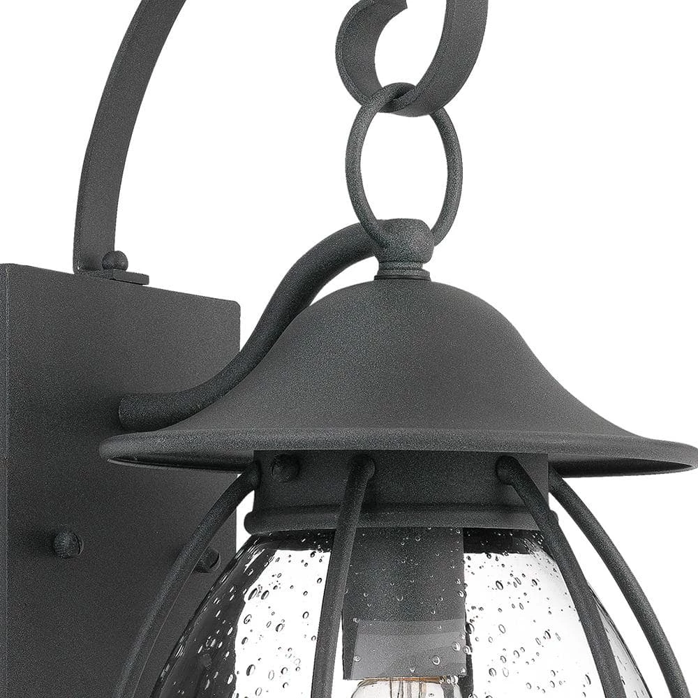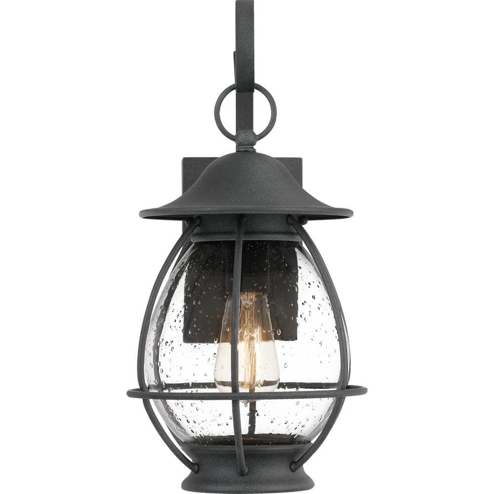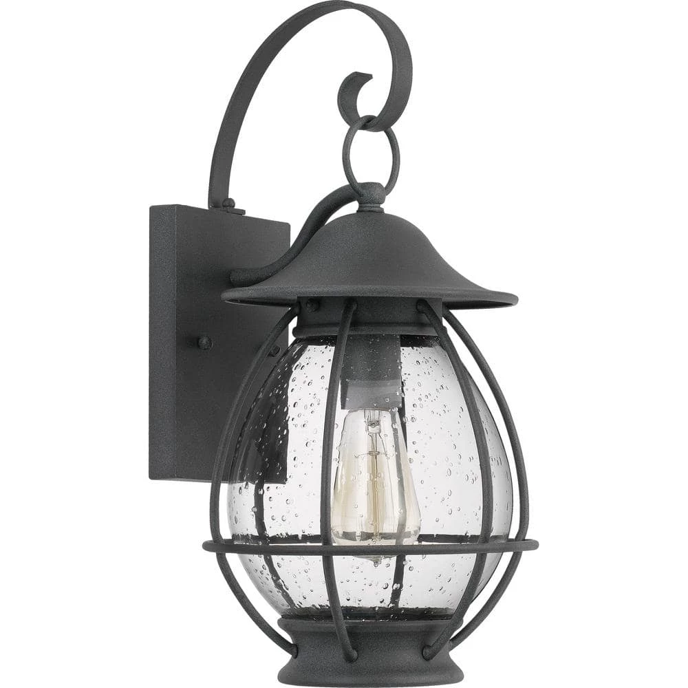 The Boston combines a traditional silhouette with nautical styling to perfectly flatter any façade. The rich mottled black finish complements the retro appeal of the seedy glass. We recommend using vintage filament bulbs for maximum flair.