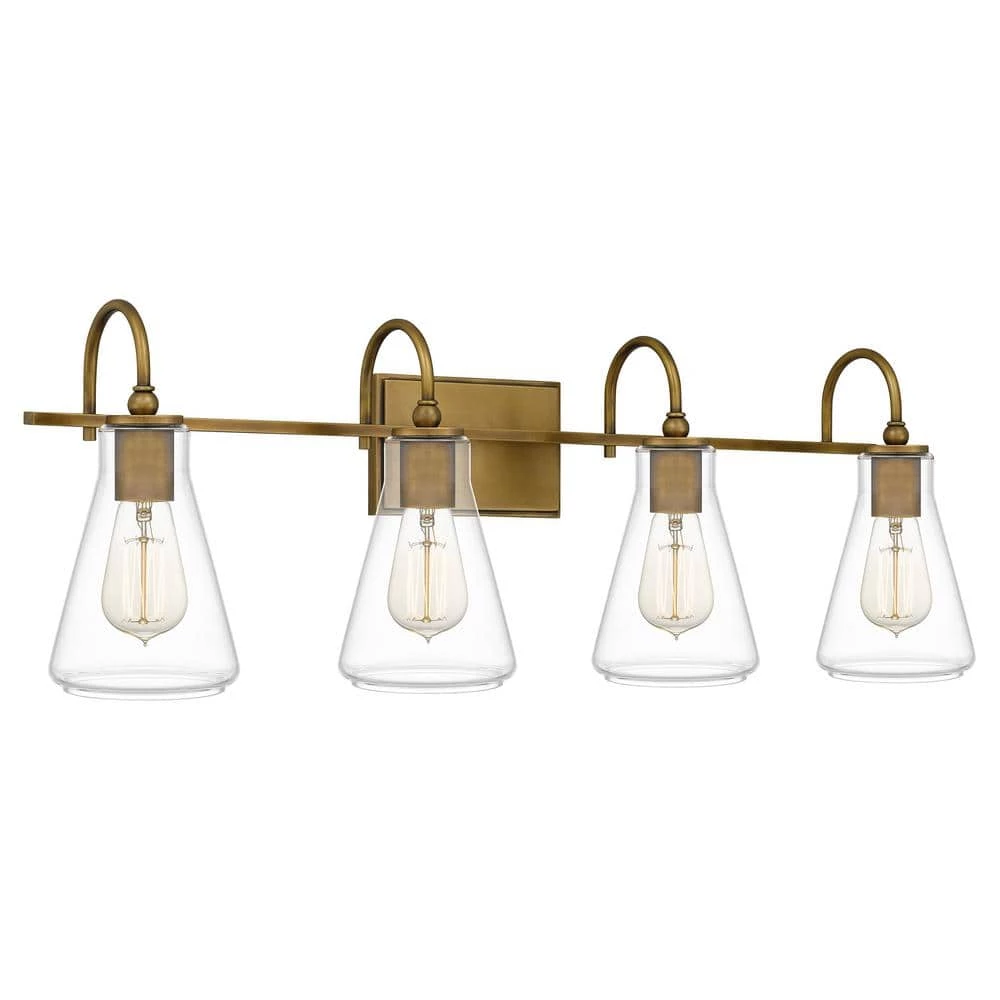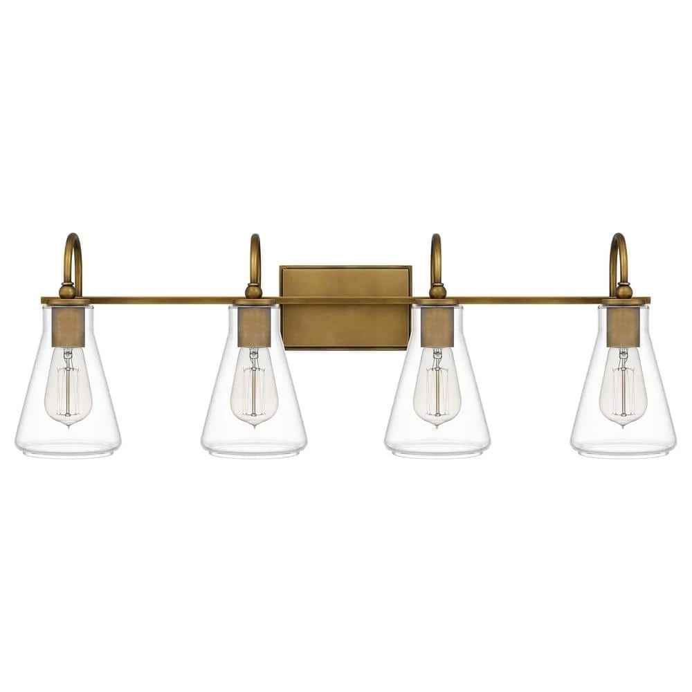 Brass meets glass. The Boyton bath light features a weathered brass finish and clear glass cups for a classic pairing rooted in antique aesthetics. Choose a two- or three-bulb option for your unique lighting needs.