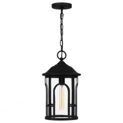 Brampton features a silhouette reminiscent of a vintage birdcage. This sweet yet sturdy design comes in a timeless matte black finish with clear glass. Its chain suspension makes a statement outside – or even in a rustic-inspired foyer or kitchen.