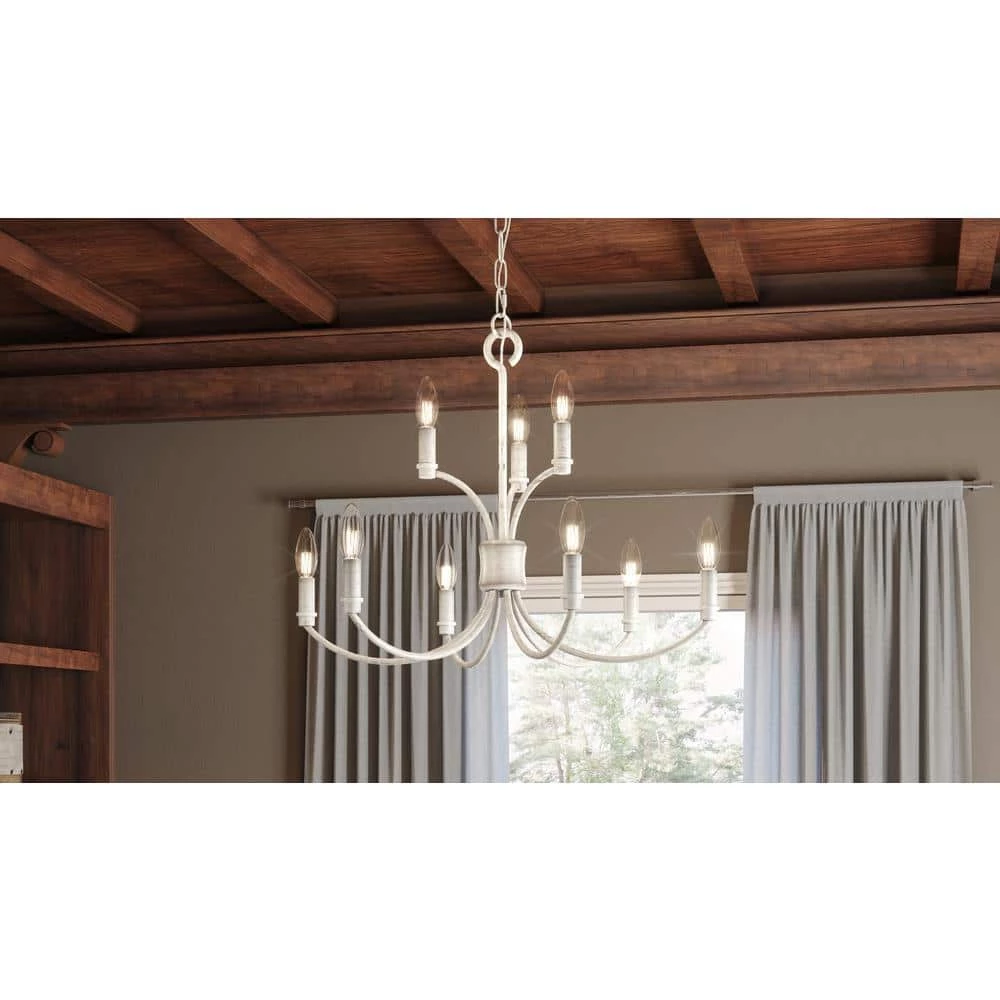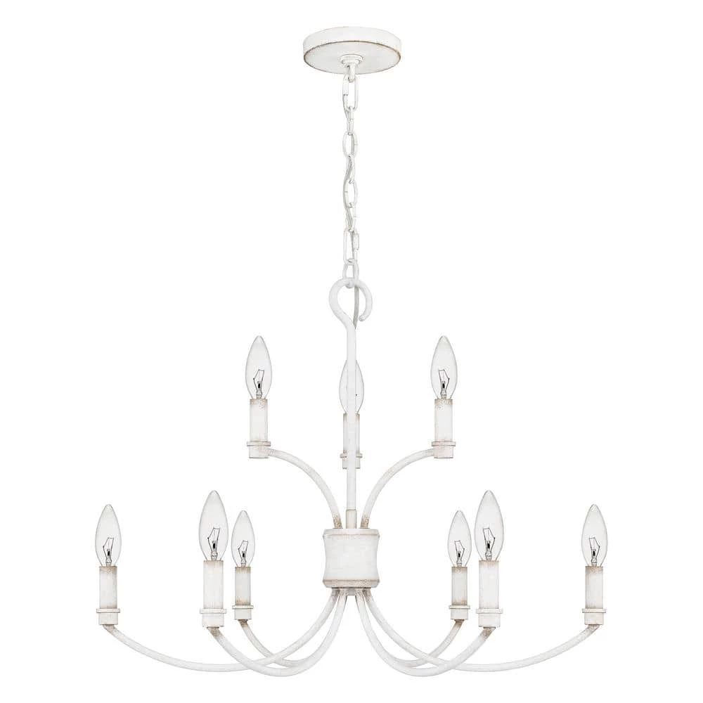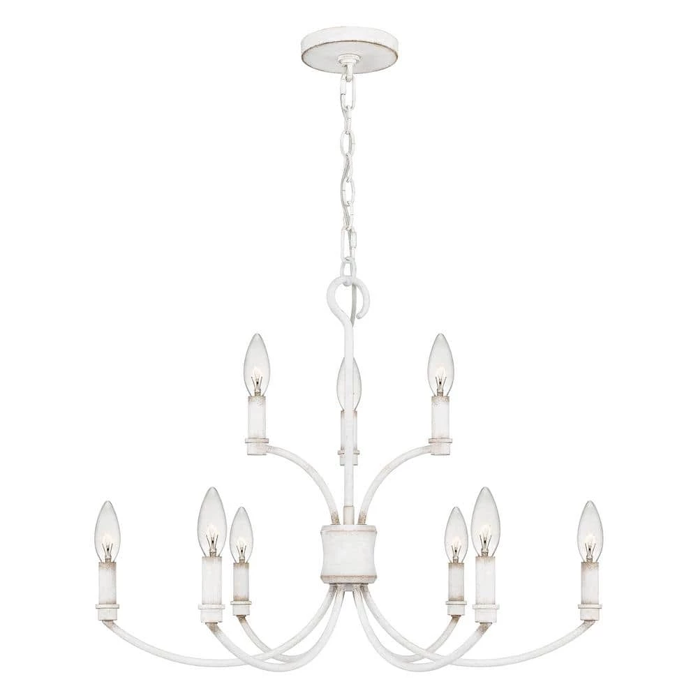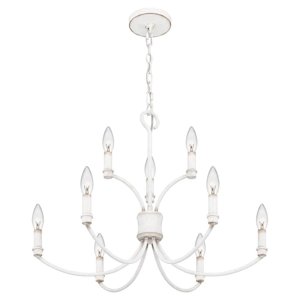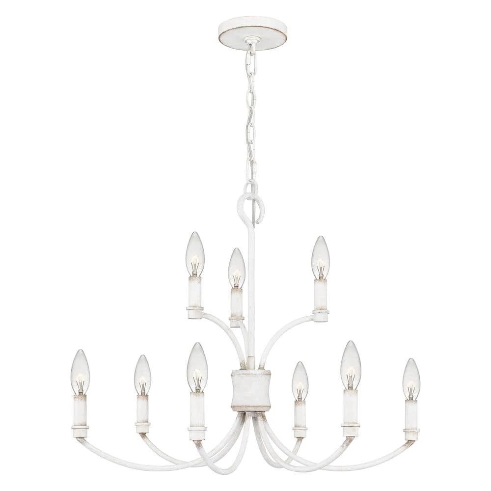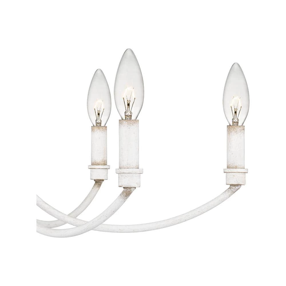 Available in antique white or matte black, the Briar chandelier brings high drama and elegance at once. Its 2-tier construction creates a stylized fleur de lis shape, underscoring its subtle French Country style. Add in clear candelabra bulbs (not included) for a vintage lighting effect.