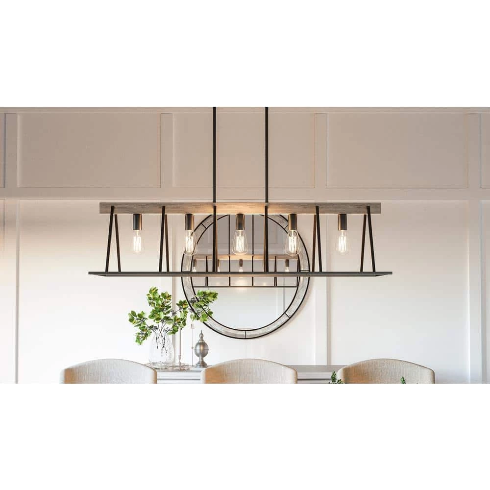 With open framework and weathered styling, the Brockton comes farmhouse-approved. The grey ash finish of the thin metal body pairs perfectly with the whitewash finish of the faux wood accents. Vintage filament bulbs provide soft, ambient light in this rustic charmer.