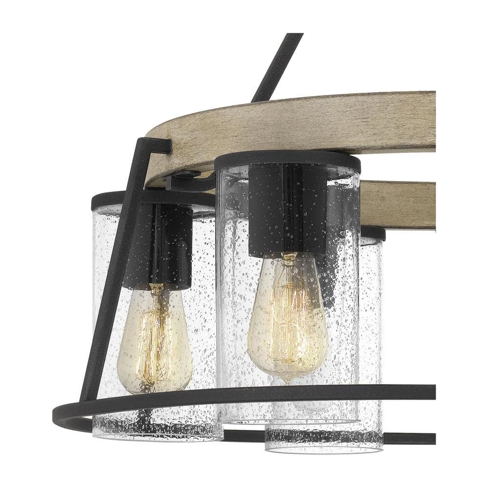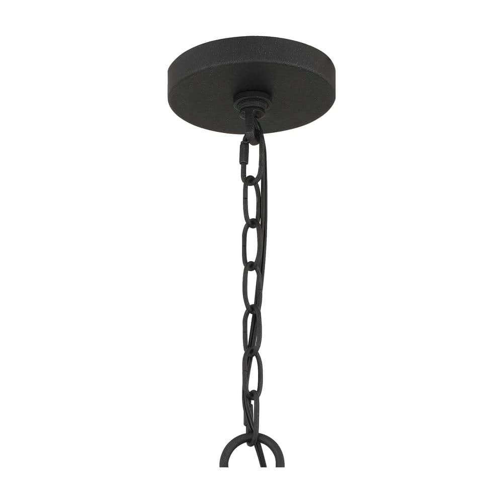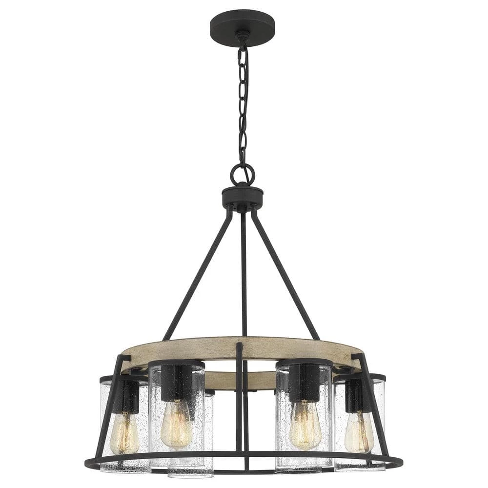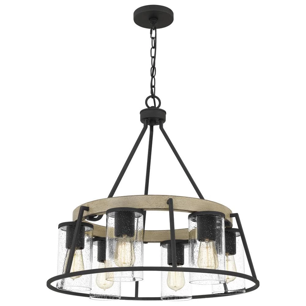 A contemporary update to the rustic chandelier, Brockton features seeded glass shades with Edison-style interior bulbs. with 6 shades suspended from a circular canopy, Brockton casts an abundant glow, even in large spaces. It’s also rated for use outdoors, so you can enjoy its radiance al fresco.