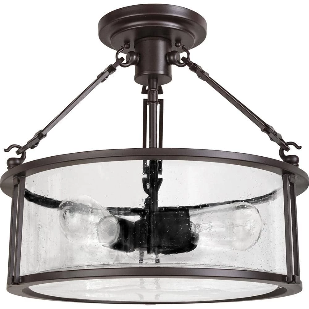 The Buchanan Collection evokes a sense of strength and style. The Western Bronze finish is a rich matte and the arms are comprised of long, rectangular links holding the piece together. The clear seedy glass adds a touch of elegance to the simplistic framework.