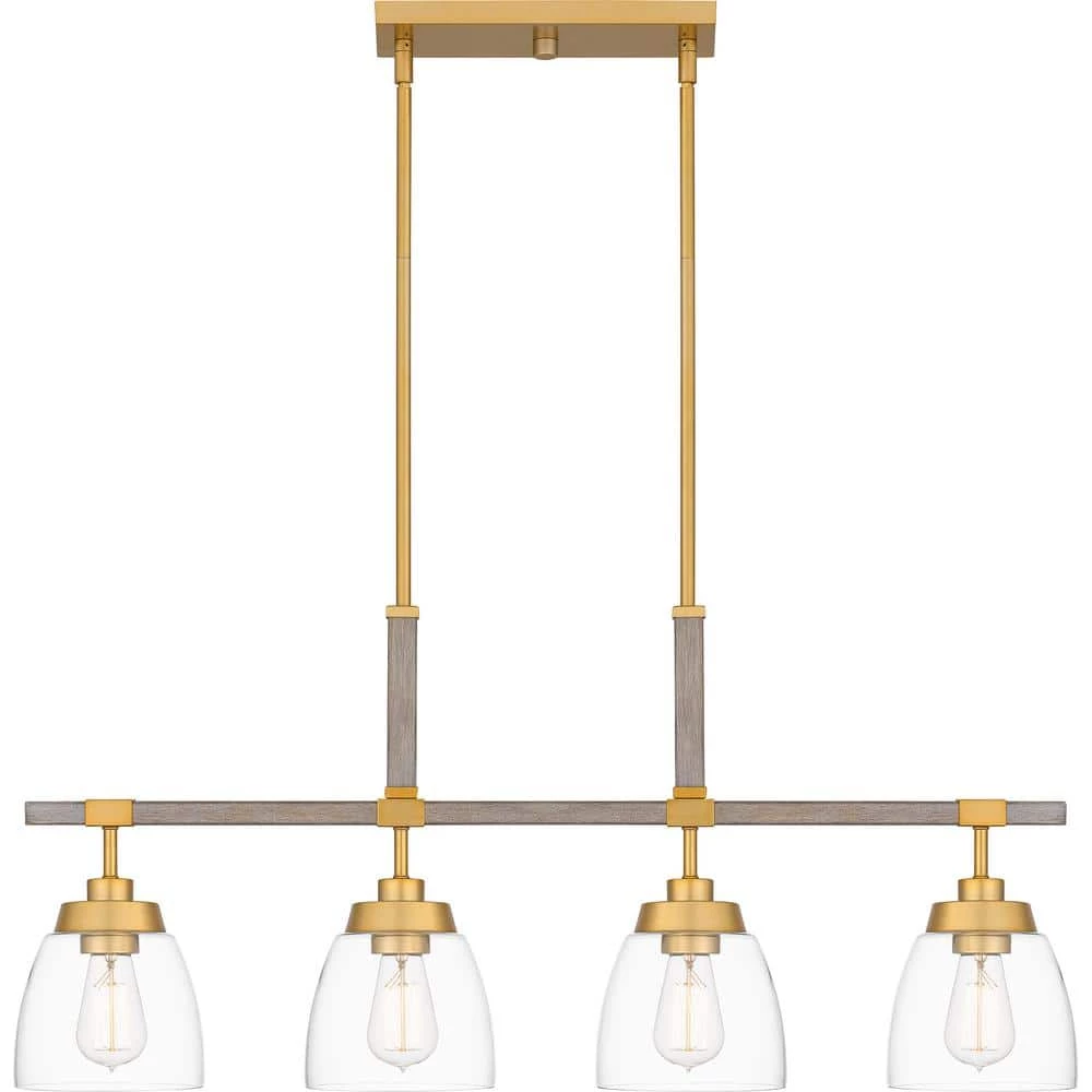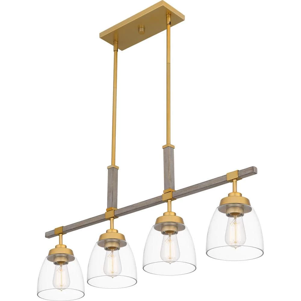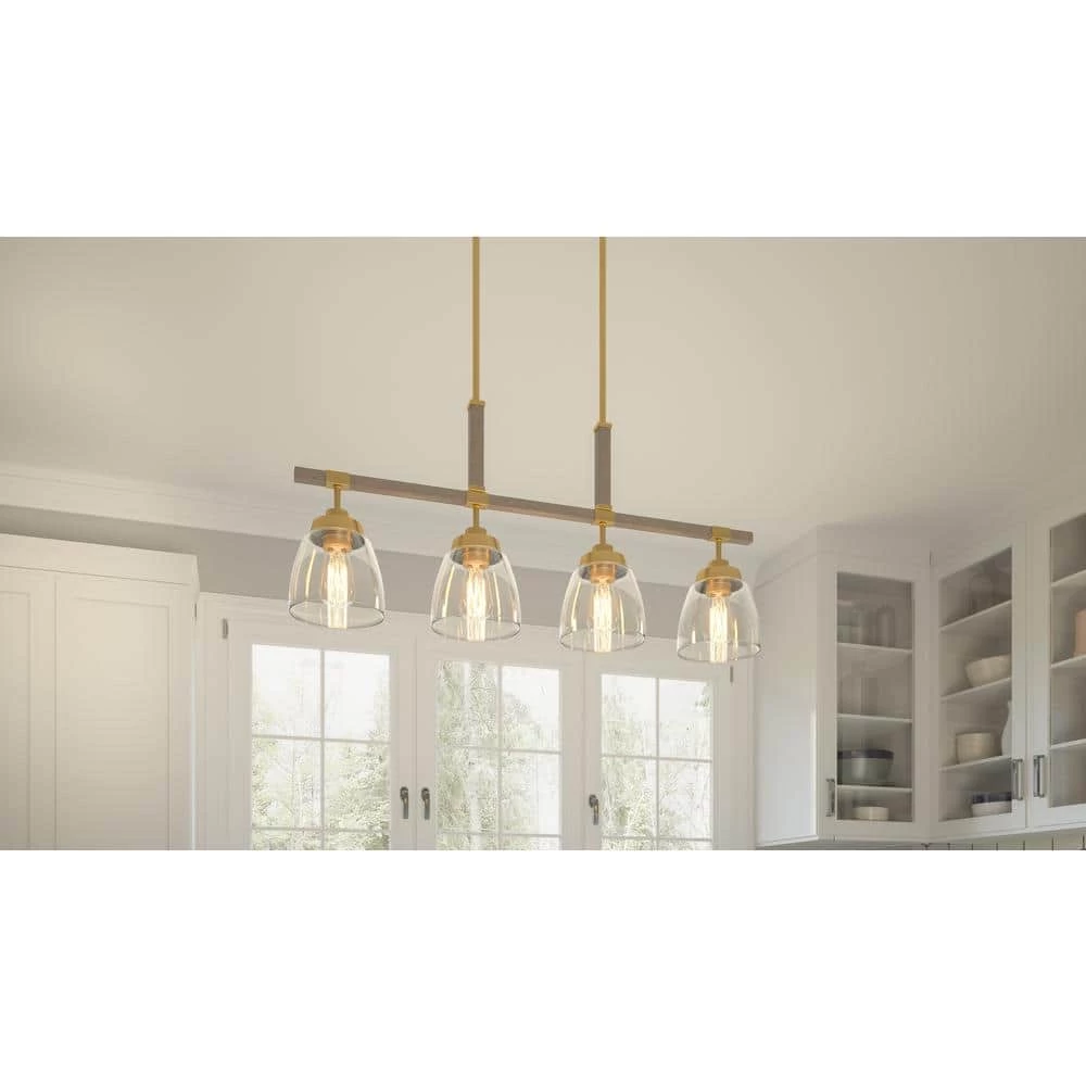 A light gold finish sets the tone for Burkett’s weathered wood details and clear glass elements. The effect is fresh and fashionable but with a subtle nod to nature. This combination of materials proves incredibly versatile, too – Burkett is available as a mini pendant, semi flush-mount, island light, or chandelier.