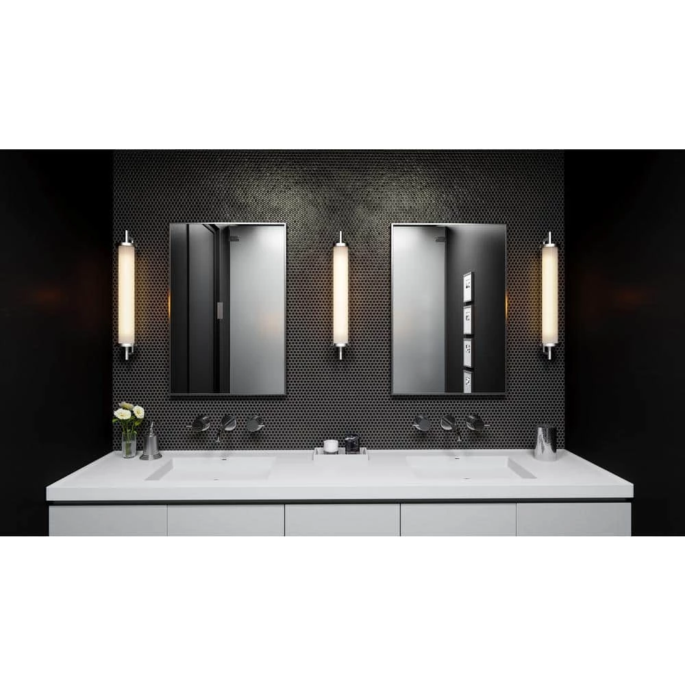With a single, radiant light source, the Caledon light can be configured horizontally or vertically. This piece, crafted from polished chrome and clear glass, is sleek and sophisticated. Use it in a contemporary primary bathroom for ample light.
