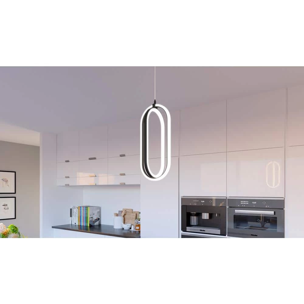 Calista’s oblong shape is a welcome change from more round or rectangular pendants. This mini pendant also includes an integrated LED light source for a glowing effect. The matte black finish highlights the soothing curves and grounds the look in modern style.