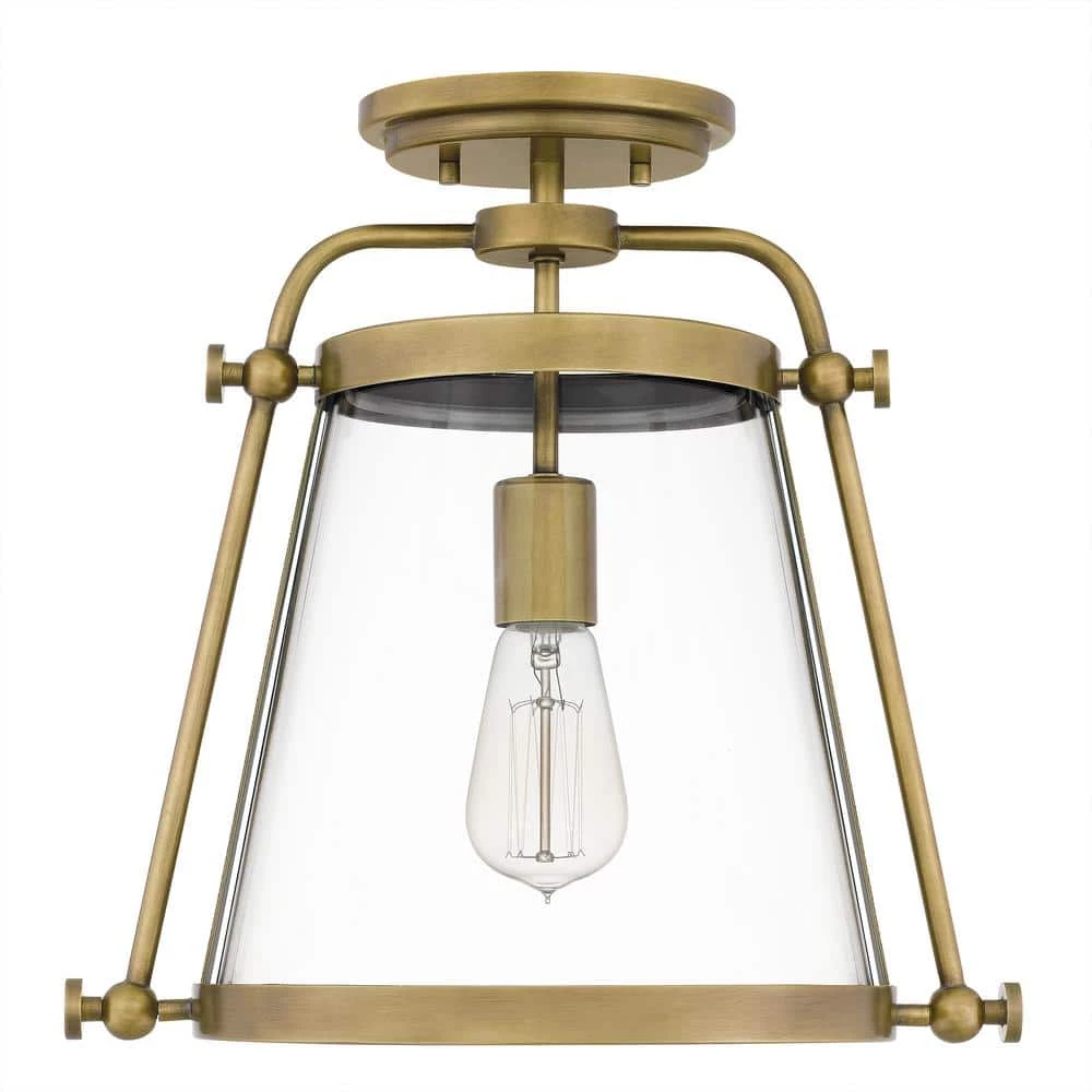 Cardiff cuts a timeless silhouette in clear glass with 2 versatile finishes. Select weathered brass for a soft, vintage appeal or keep it classic with polished chrome. Choose from either a mini-pendant or semi-flush mount light – and add in a vintage style bulb (not included) for a dash of retro-inspired flare.