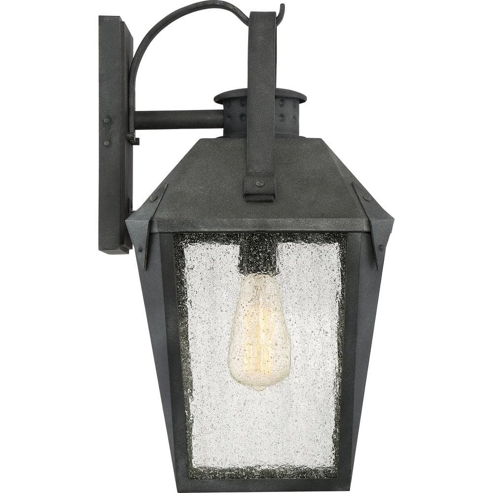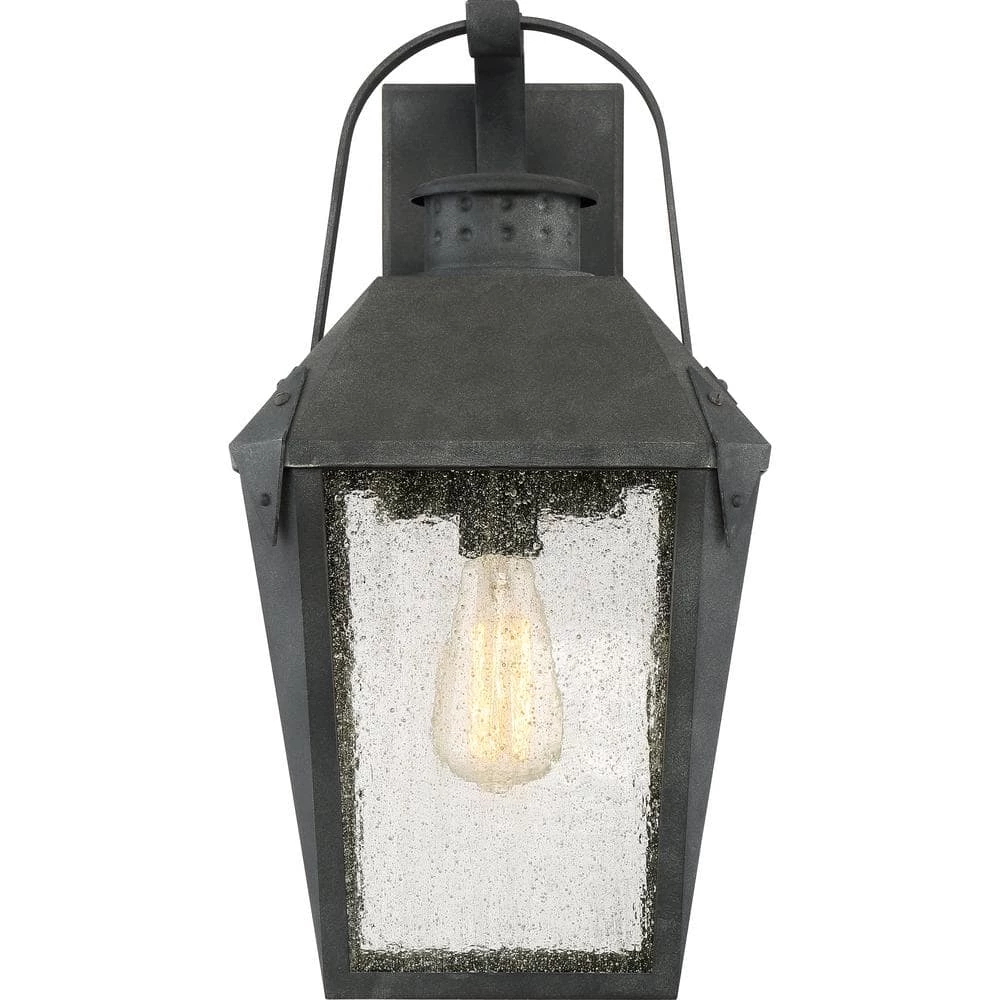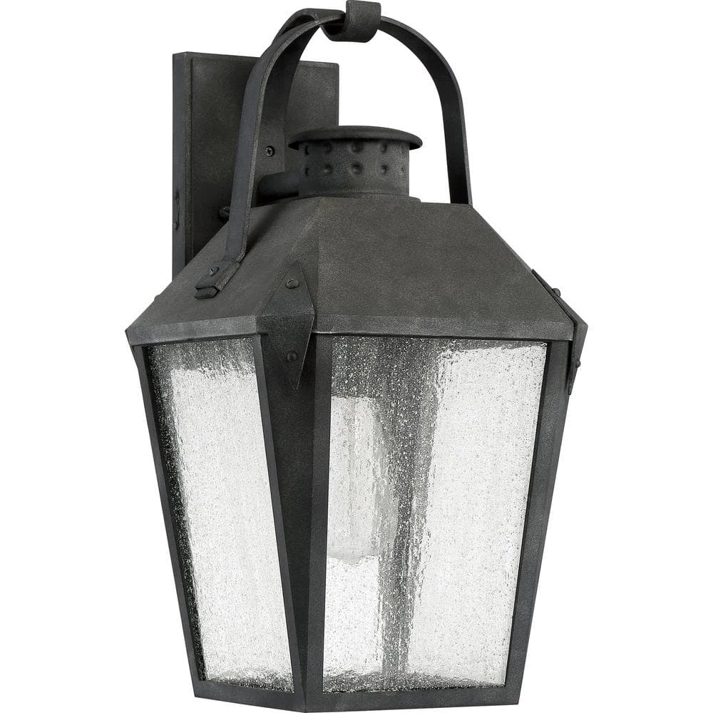 The aptly named Carriage Collection features great style that suits many different homes. All of the details from the metal strap to the diamond-shaped corner accents the clear seedy glass come together to create a classic, timeless design. The depth and richness of the Mottled Black finish gives the appearance of age and time gone by. (Please note that the vintage bulbs are not included but are available for purchase.)