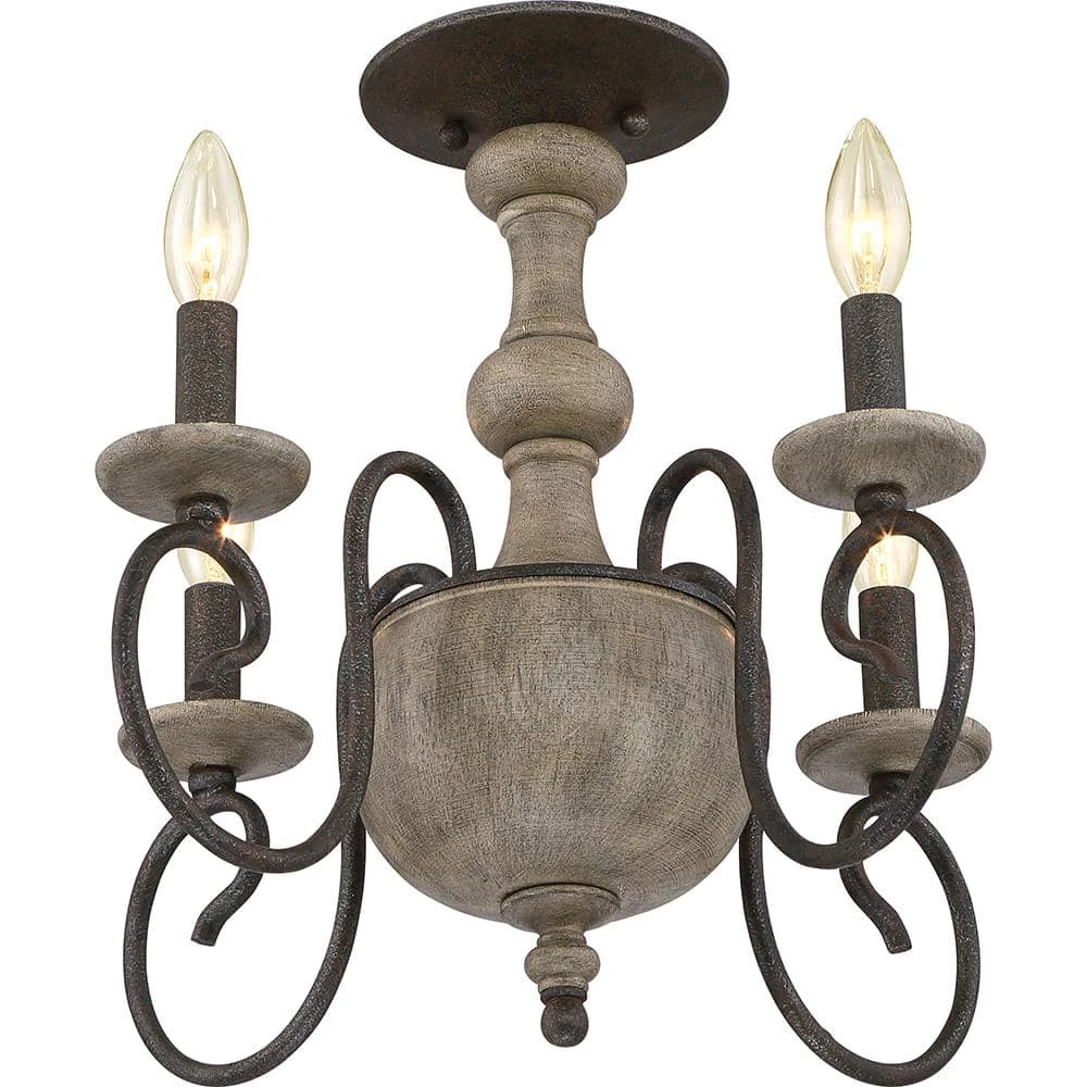Castile is a robust design with sweeping curves and unique coloring. The fixture body is comprised of real wood stained in a soft grey wash that enhances the beautiful grain. The arms are finished in a rough textured Rustic Black.
