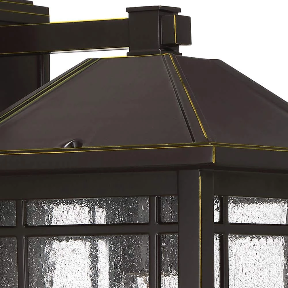 From a rustic lodge to a craftsman-style cottage, the Cedar Point collection is versatile styling at its finest. The seedy glass panels subtly obscure the light source while providing visual interest. The frame is accented with slender trim and lattice detailing that beautifully frames the lantern’s soft glow. A rich Palladian bronze finish completes the look.