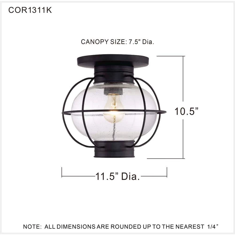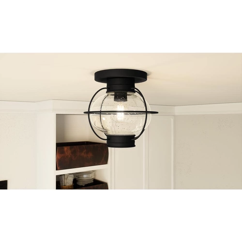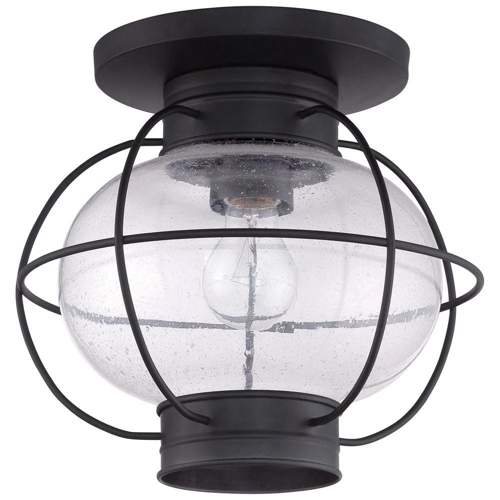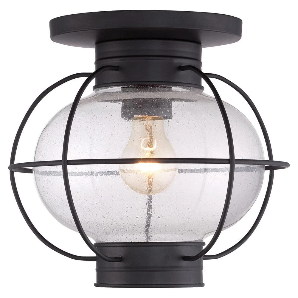 Add a nautical touch to your home with the Cooper Collection. Inspired by old Americana, the clear seedy glass and mystic black finish are sure to impress all of your house guests. This versatile piece complements many indoor or outdoor settings.