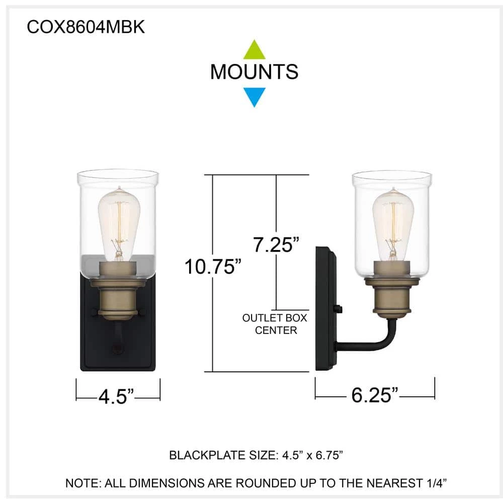 Outfit nearly any room in the house with the Cox design. This handsome, vintage-inspired style is available as a mini pendant, flush or semi-flush mount island light, chandelier, wall sconce, or bath light. Its simple, timeless mix of clear glass and matte black and bronze accents illuminates classic style.