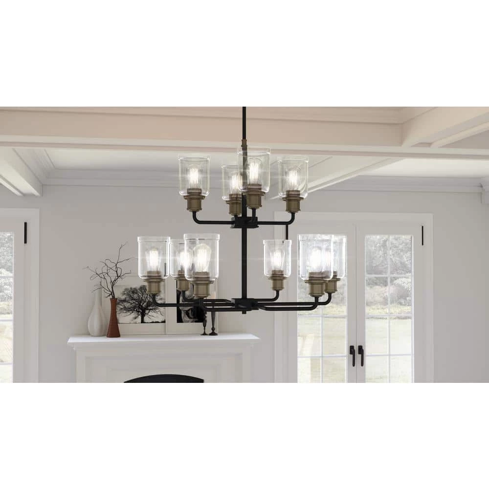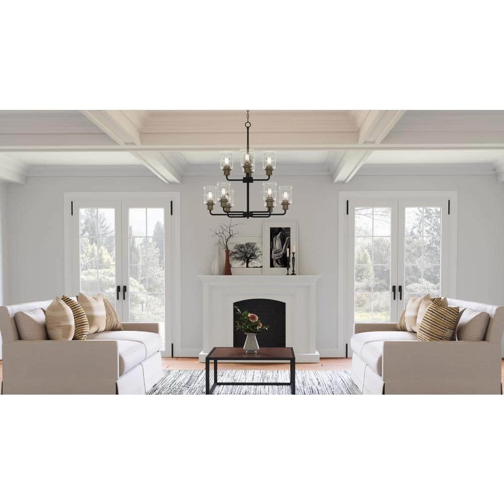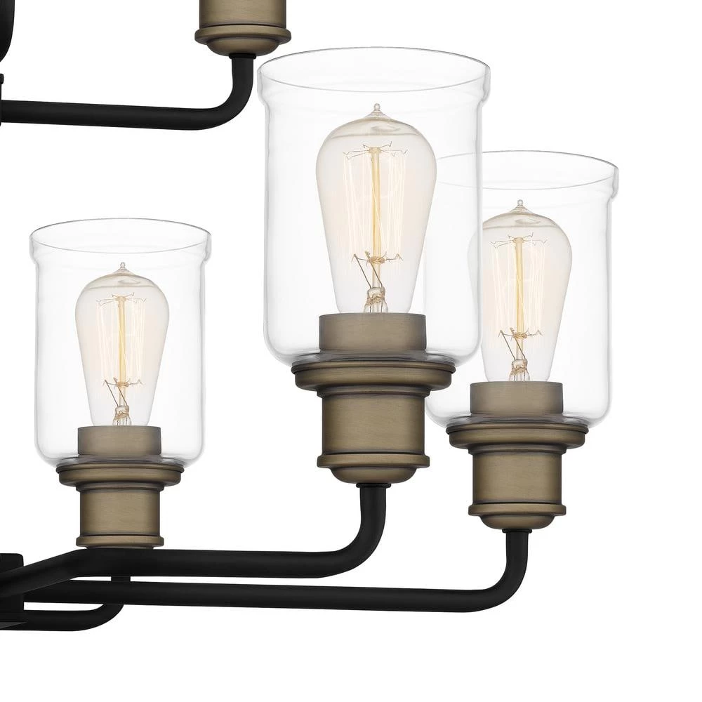 Outfit nearly any room in the house with the Cox design. This handsome, vintage-inspired style is available as a mini pendant, flush or semi-flush mount island light, chandelier, wall sconce, or bath light. Its simple, timeless mix of clear glass and matte black and bronze accents illuminates classic style.