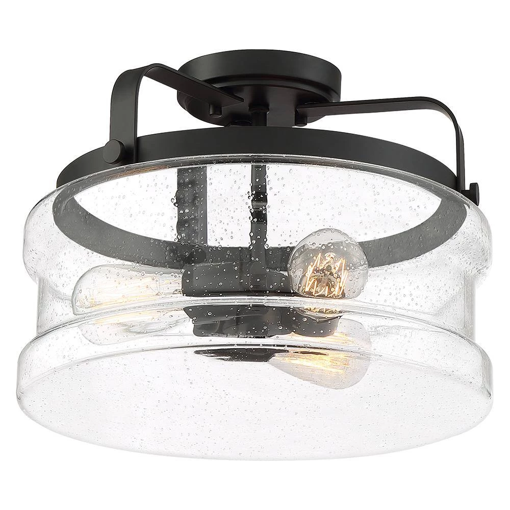 Traditional in design yet transitional in execution, the Danbury collection features globes in seedy glass with a unique jar-like silhouette. The decoratively capped center rod supports gooseneck arms that secure the vintage-inspired globes with exposed latches. The versatility of the collection is further defined by its lustrous Polished Chrome, Brushed Nickel, or Earth Black finish.