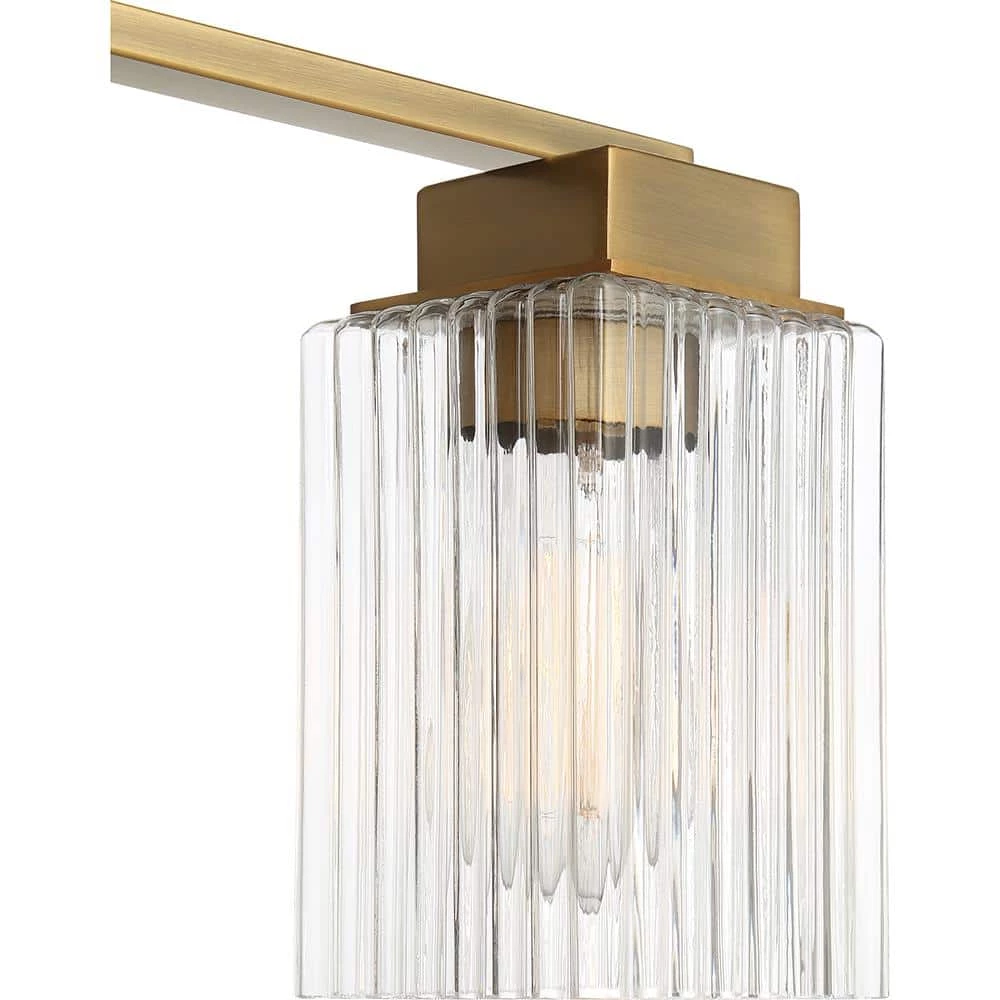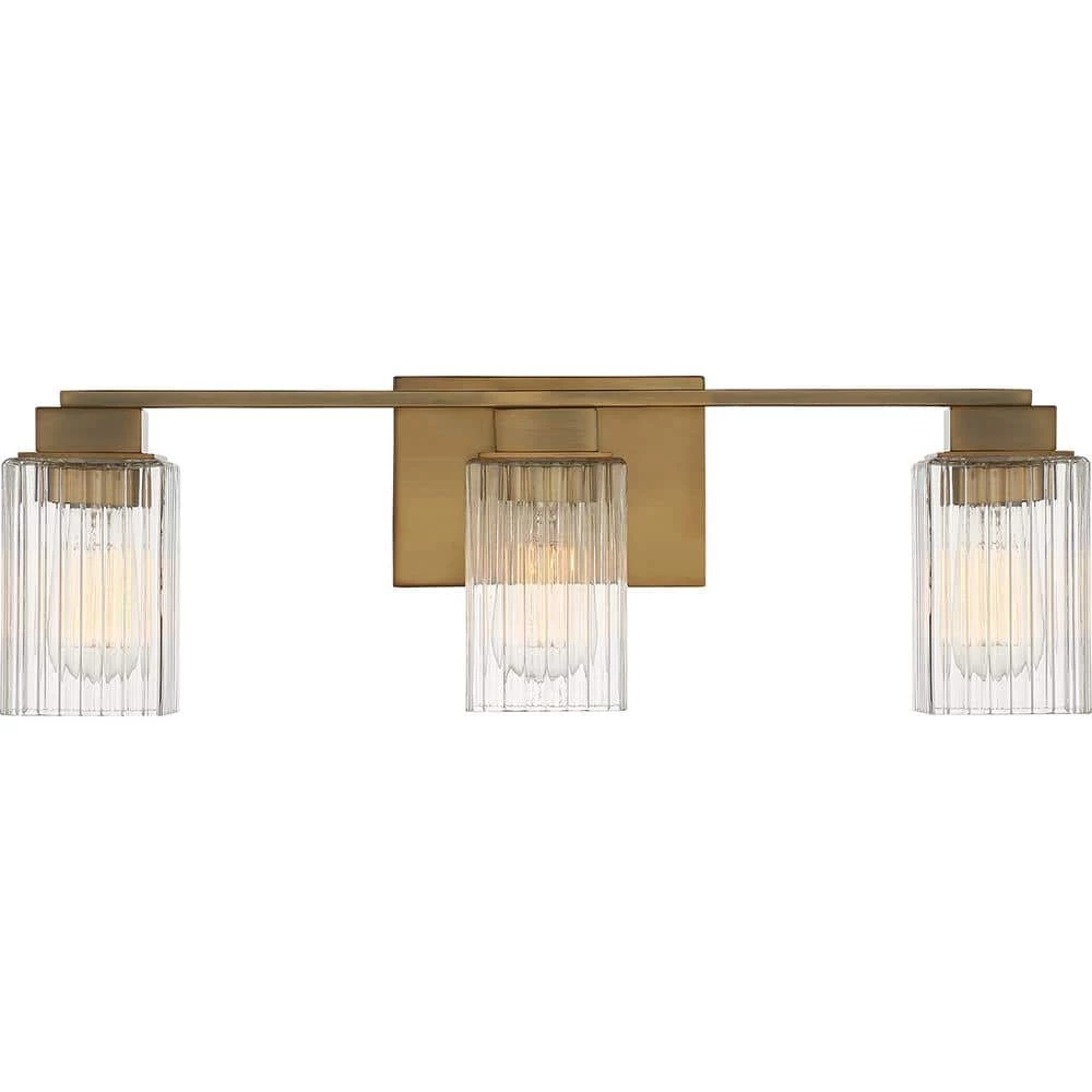 Art Deco ambience shines in the Danson family, a collection of vanity lights available in weathered brass or polished nickel finishes. Central to Danson’s sophistication are its ribbed glass shades, creating bold, graphic lines that pay homage to the very best of Deco design. Add Edison bulbs to maintain the vintage look.
