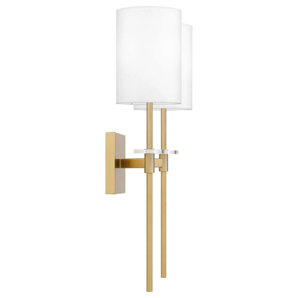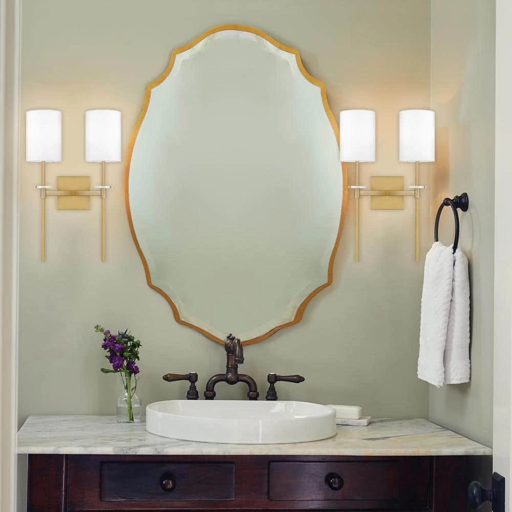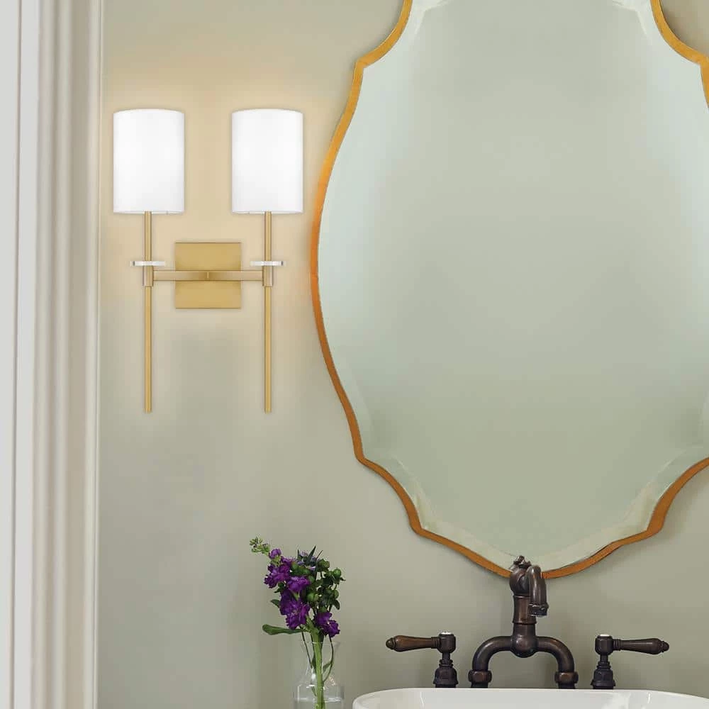 Undeniably sleek, the Dyad style would be right at home in a five-star hotel. This sconce features an aged brass finish – giving it an element of vintage flair – and a white fabric drum shade for added contrast and texture. While suitable for a bathroom, Dyad also enlightens a bedroom, library or den.
