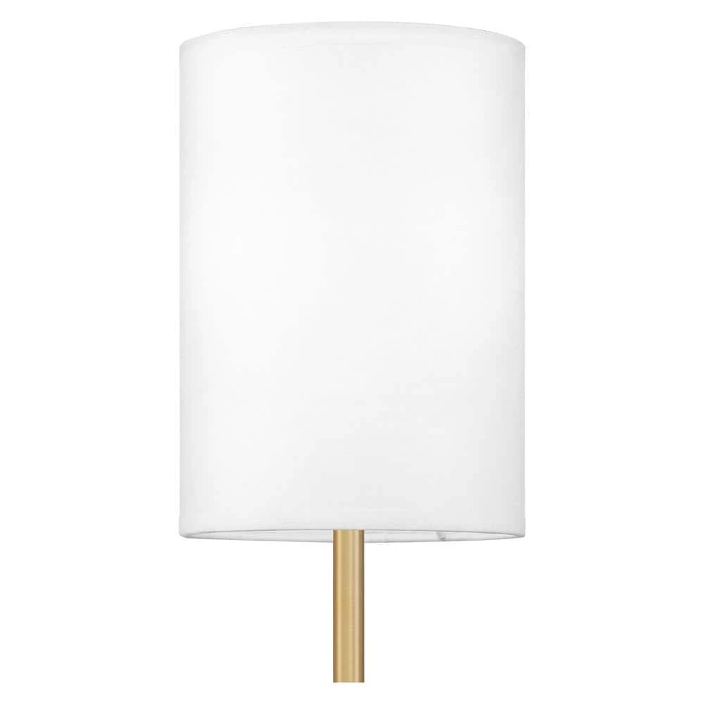 - White fabric shade adds depth and texture