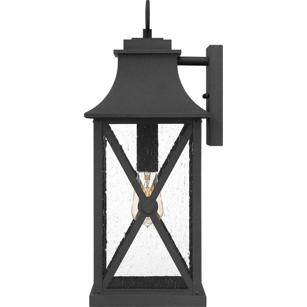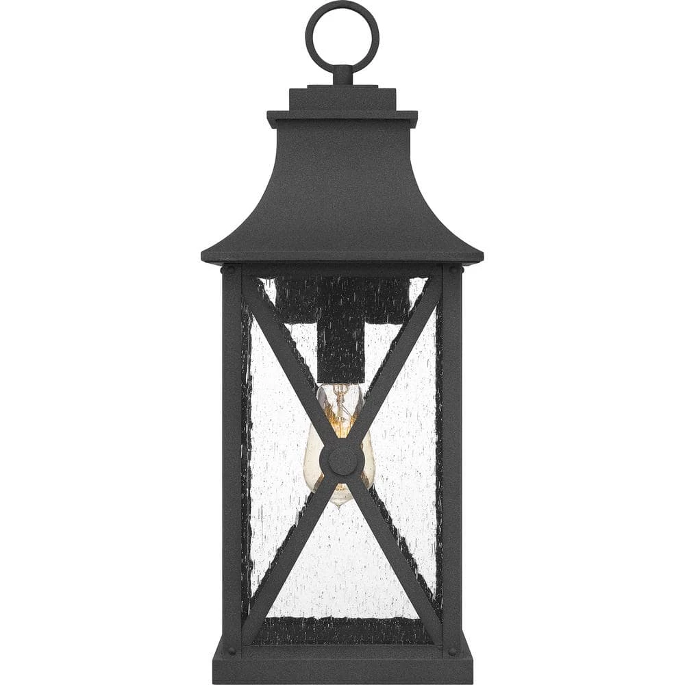 Add instant curb appeal to your home with the Ellerbee collection of outdoor lanterns. The rectangular frame and metal lattice work create a transitional feel that complements any modern farmhouse or coastal style home. Clear seeded glass panels are coupled with an enduring mottled black finish for an extra layer of charm. Ellerbee comes in many options including a hanging lantern, wall lanterns, and post lantern to round out your home’s exterior. As part of our Coastal Armour collection, this product is durable, marine grade, and comes with a 5-year limited warranty.