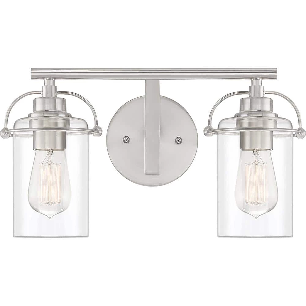 Emerson’s transitional silhouette charms with unique harness-style brackets and simple clear glass shades. These bath vanity lights are available in multiple sizes and either a Brushed Nickel or a Matte Black finish. The Brushed Nickel finish boasts a classic simplicity while the Matte Black finish gives way for a more industrial feel with its use of mixed metals. Whichever option you choose, you can’t go wrong with Emerson.