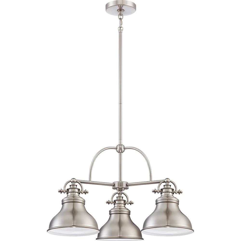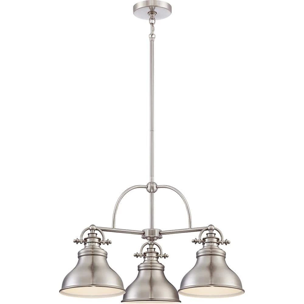 This metal shaded fixture is an elegant nod to the past. The classic Americana styling adds a nostalgic flair to your home. When hung over a kitchen island or dinette table it provides ample lighting for all your daily tasks. It is available in 4 fabulous finishes, brushed nickel, imperial silver, Palladian bronze and distressed nickel.