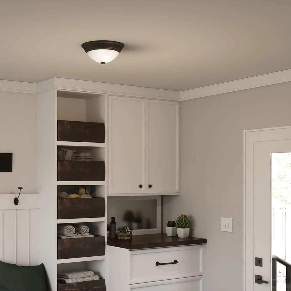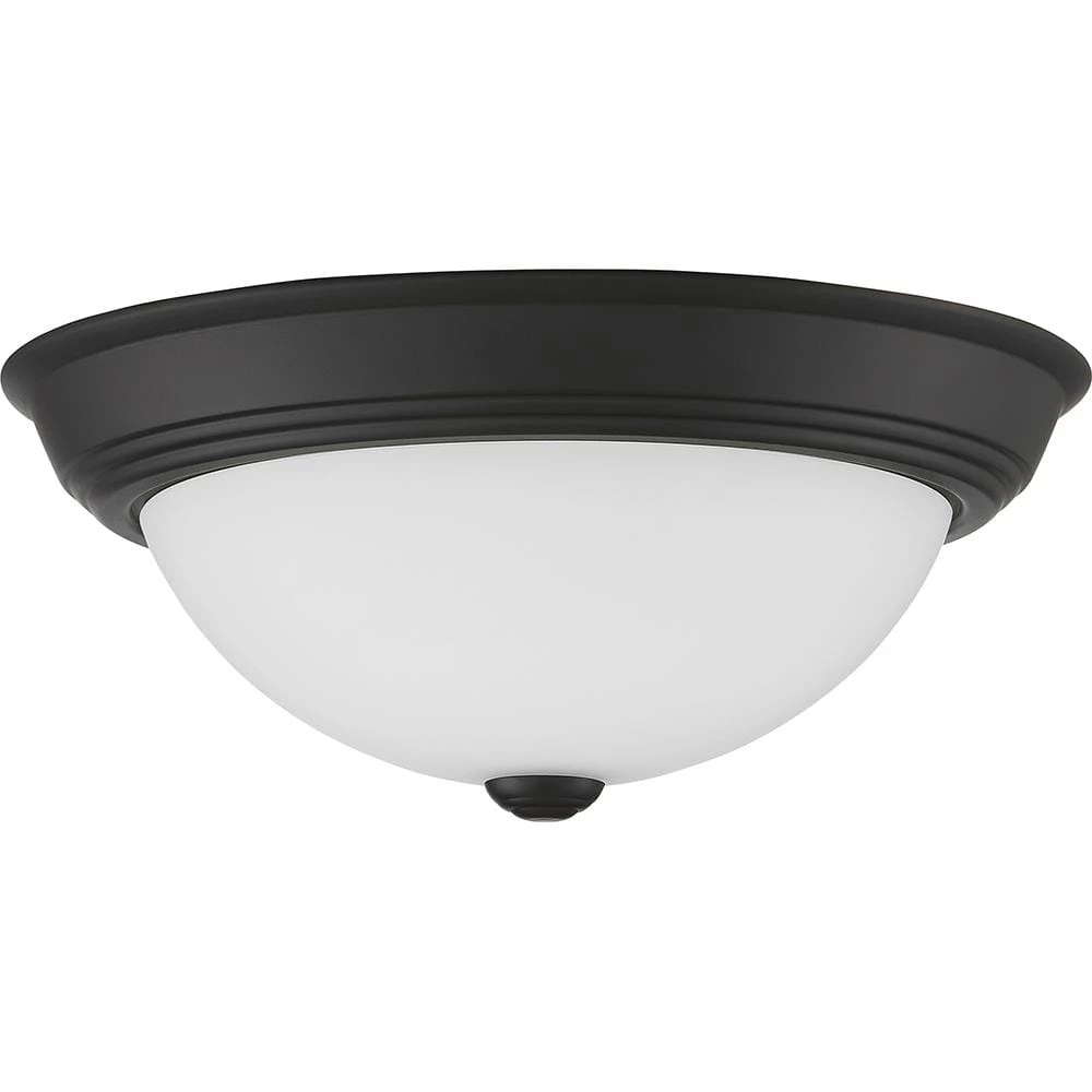 Complement any room or home decor with the classic look of the Erwin. This transitional flush mount collection comes in your choice of brushed nickel, matte black, old bronze or white lustre finish. The opal etched glass is paired with a solid trim and matching finial to create a uniform and simplistic look.