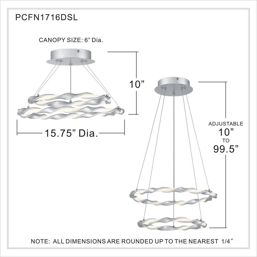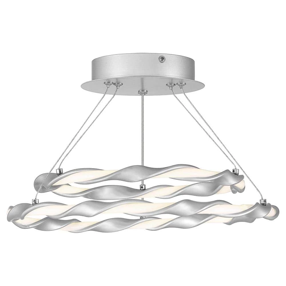 Bring an updated look to your home with the Finale collection. This contemporary style fixture features a tiered silhouette with twisted detailing that is suspended with thin cables to create a unique floating effect. This collection comes in a Dipped Silver, Earth Black, or White Lustre finish and uses integrated LED for a stylish and energy efficient design.