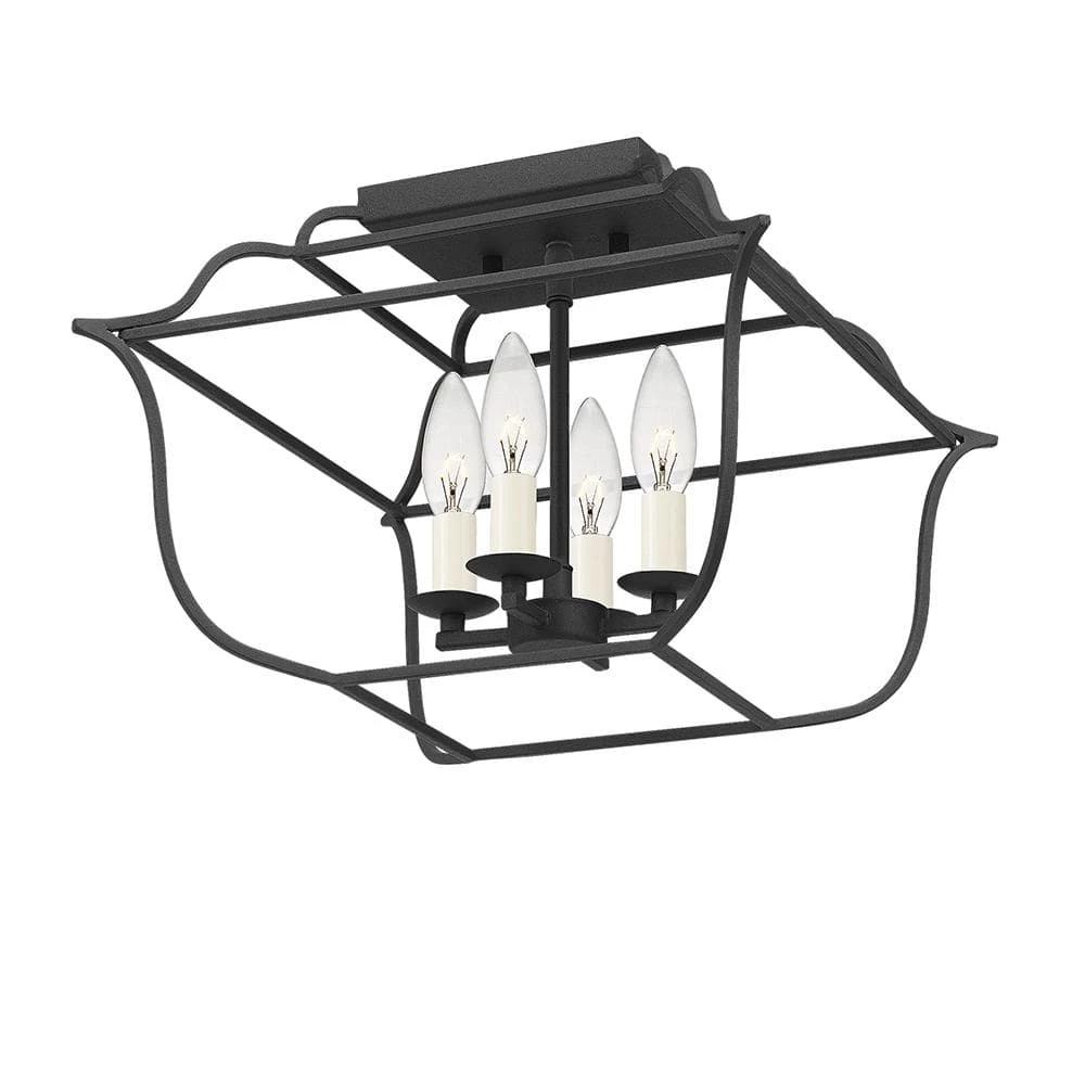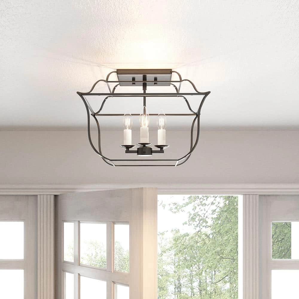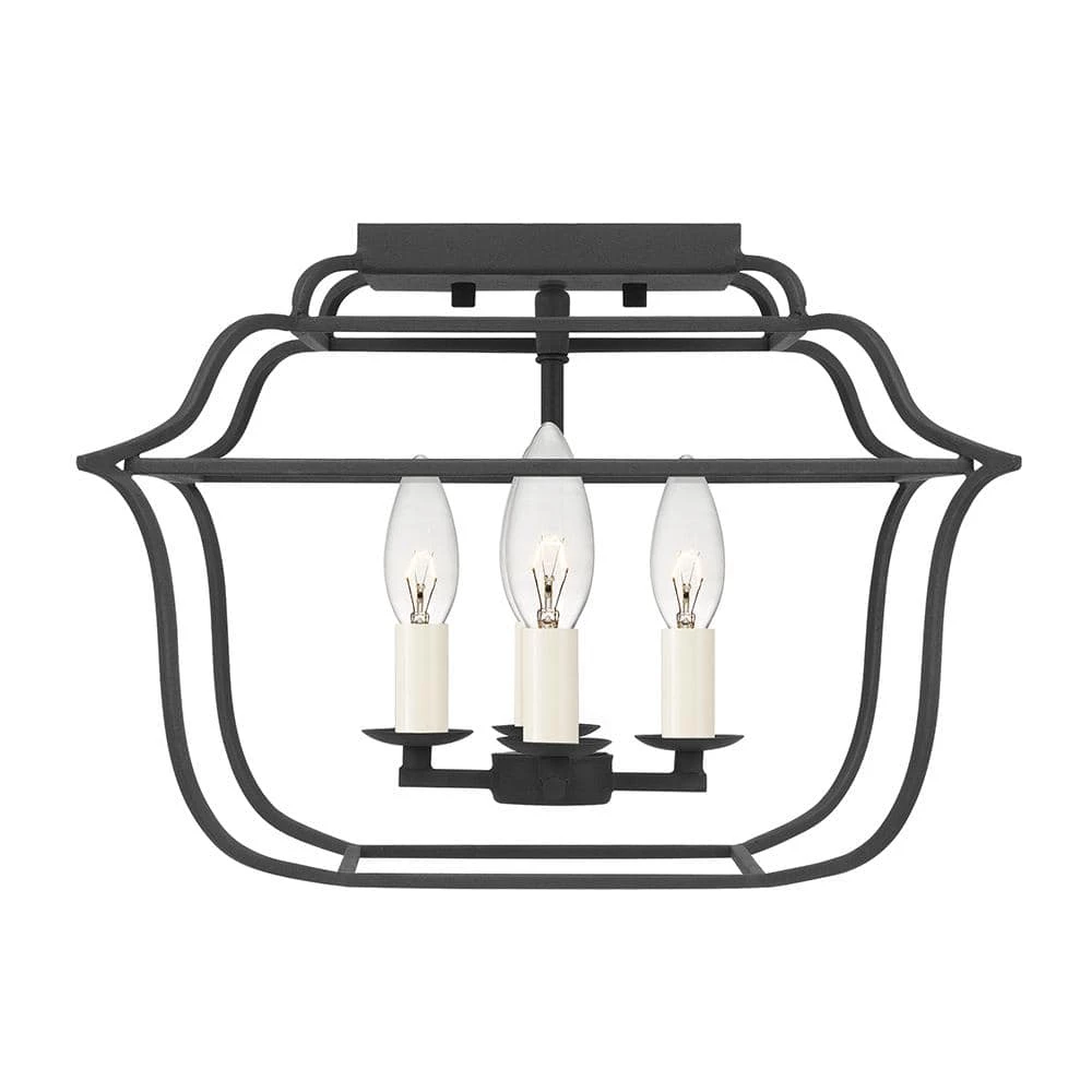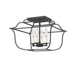 Cultivate French Countryside style with the Gallery family of lighting. These semi-flush mount and pendant lights recall the curvilinear shape of antique birdcages. Inside, candles perch in a tidy row like goldfinches. Special finishes – either royal ebony or Palladian bronze – establish a time-worn look.