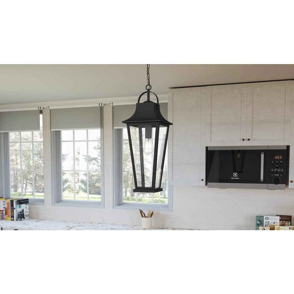 Galveston is a beautifully crafted addition to any home. Its gently tapered frame and classic top loop add to the collection’s versatility, while the mottled black finish and clear seedy glass panels showcase the beauty of the exposed bulb socket. Hang indoors or outdoors and add in a vintage filament bulb for an extra layer of flair (not included).