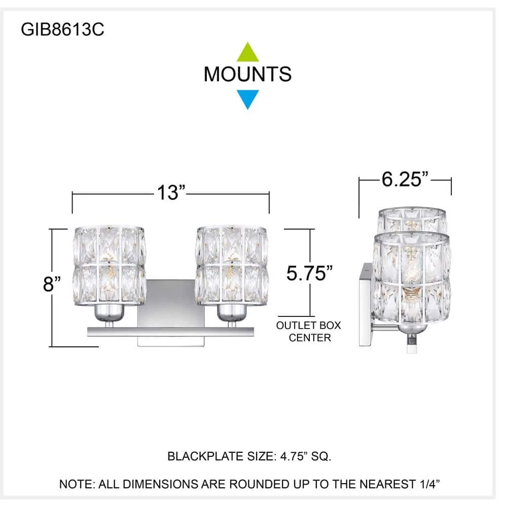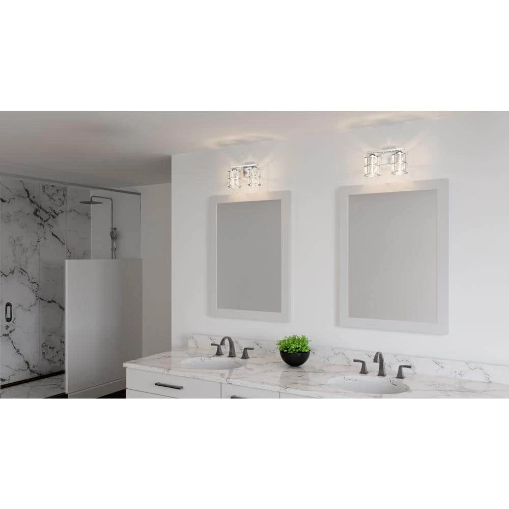 Add instant mystique above a bathroom vanity with the Gibson bath light. A clear beveled crystal shade creates a dazzling play of shadow and light, paired with a polished chrome finish. Configure this glamorous fixture up or down depending on your lighting needs.