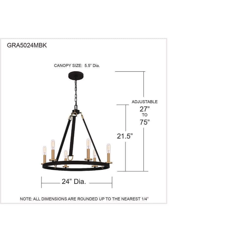Rustic charm meets industrial sensibility. The Graylyn chandelier balances antique elements – like an iron-inspired chain and matte black finish – with modern flourishes via simple, sculptural candle cups. Gold accents and buckle details resembling leather straps make this collection a modern industrial dream. Graylyn makes a statement in a farmhouse kitchen or dining room, or any space with a vaulted ceiling.