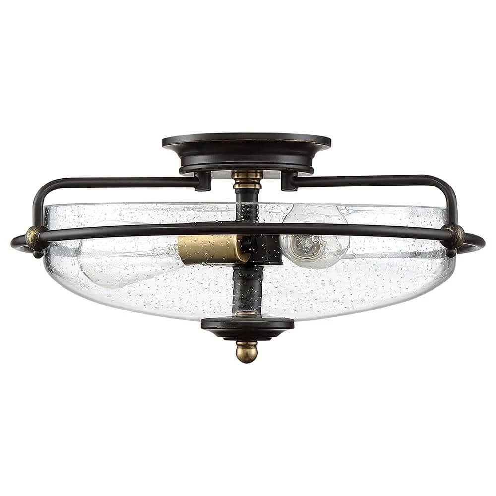 This understated style provides a stylish, soft modern look for most any room. The clear seedy glass illuminates your home with a soothing glow. It is held in place by softly curved arms and is finished in a rich palladian bronze.