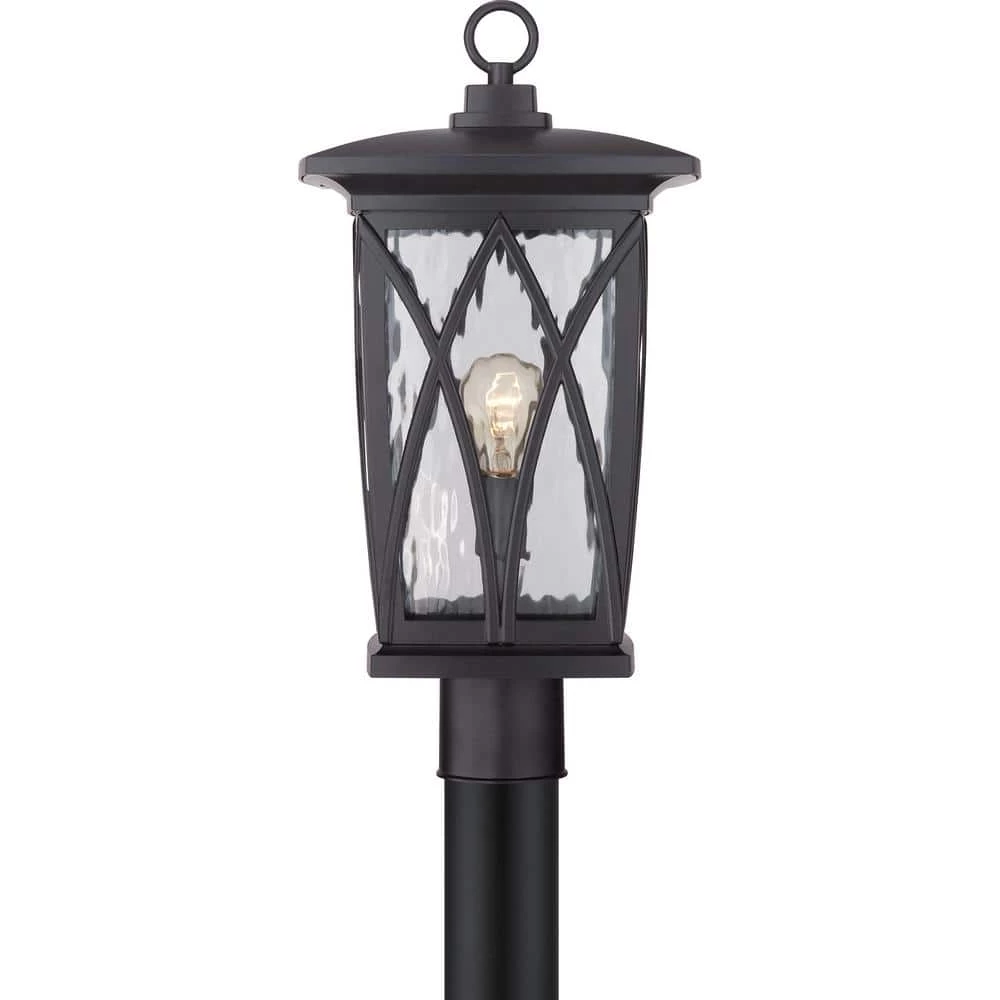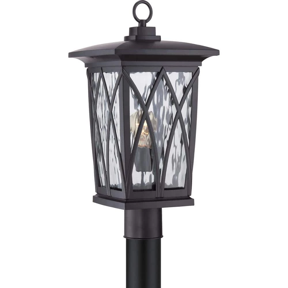 Grover is a definitive design of Craftsman sensibilities updated with a Contemporary twist. The base is finished in classic Mystic Black a smooth matte finish perfect for complementing your home. The curved bands enclosing the clear water glass add the finishing touch to an already fabulous outdoor collection.
