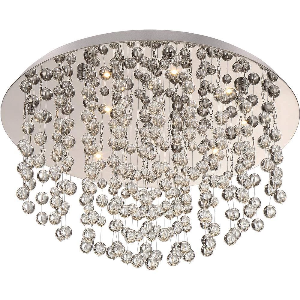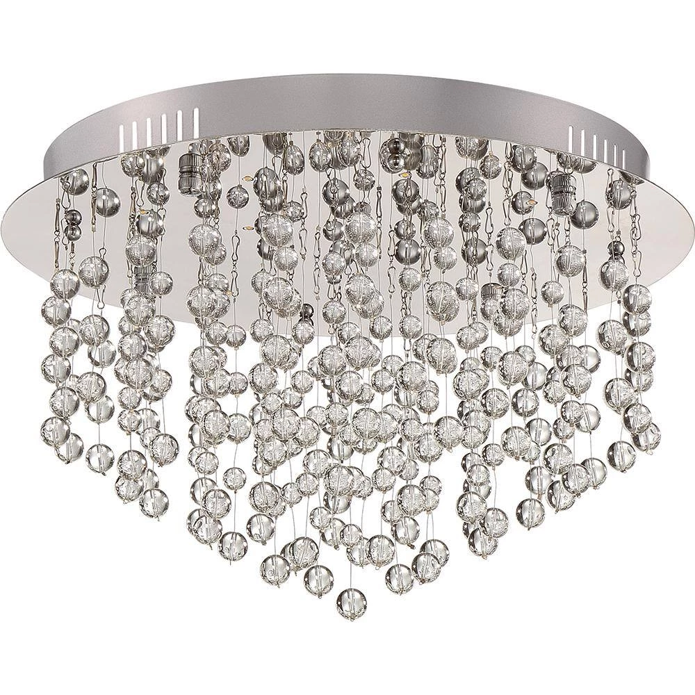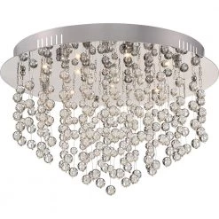 A gleaming disc with perfectly flowing crystal beads takes the Highrise flush mount series to new heights. The arrangement of crystal beads are strung together vertically coming to a peak at the base for a resplendent display of sparkle and are refracted in the mirrored Polished Chrome finish of the base. When paired with a compatible dimmer, this fixture dims to your desired ambience.