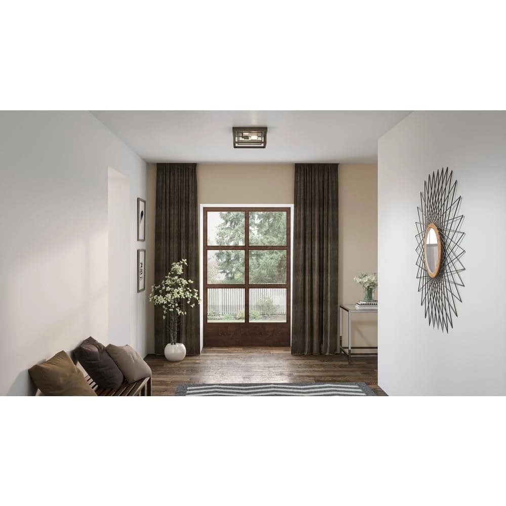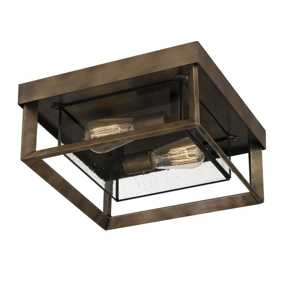 Create patina and intrigue overhead with the Infinger semi-flush mount. This angular-piece is available in a rich, statuary bronze or striking earth black finish. Clear seeded glass creates even more visual interest.